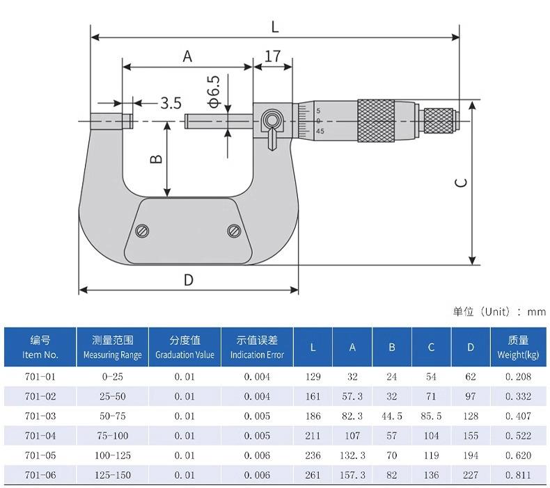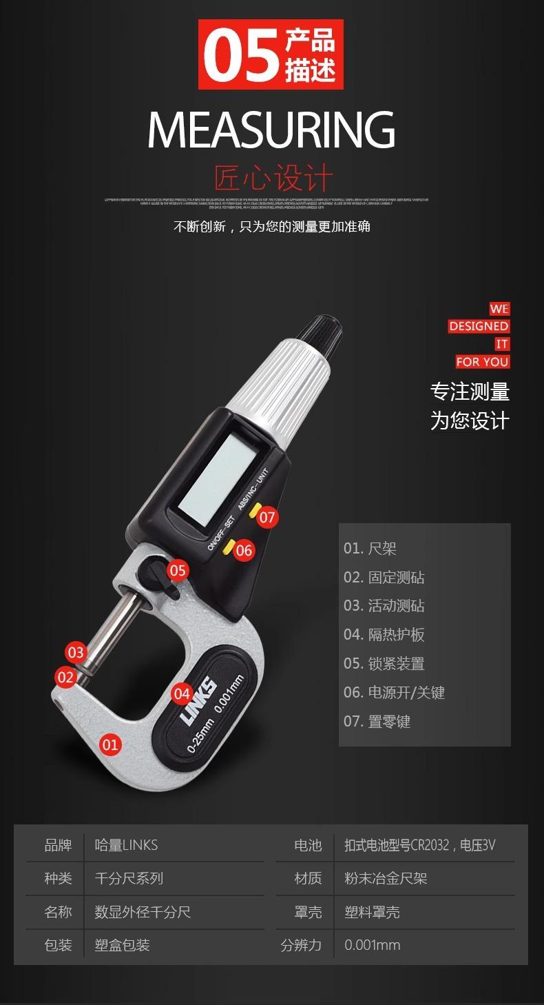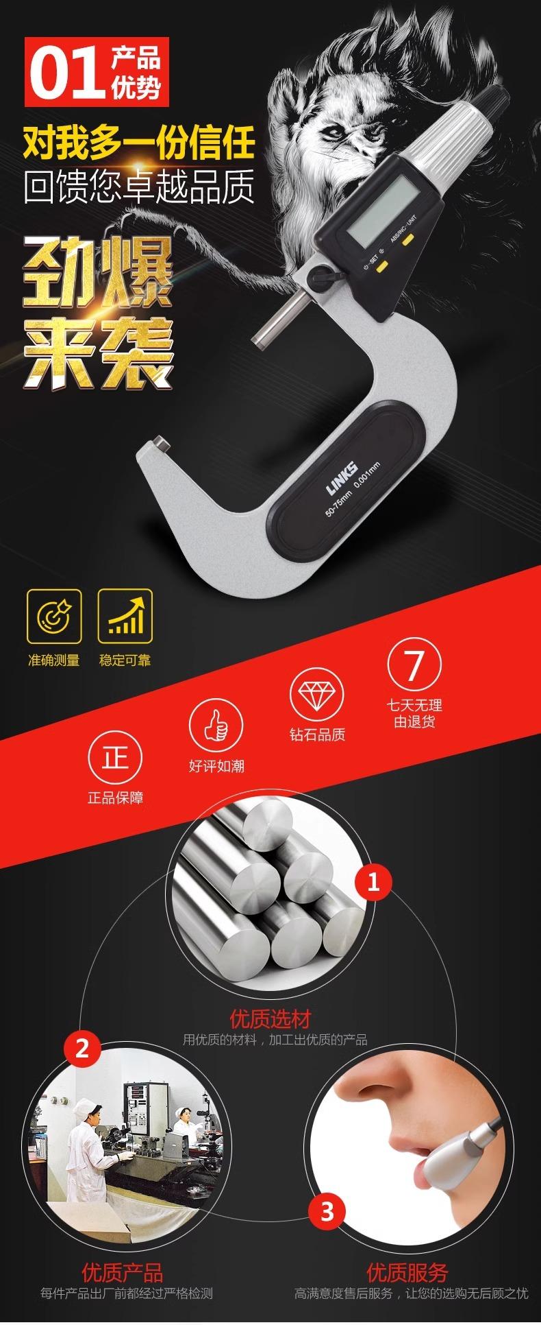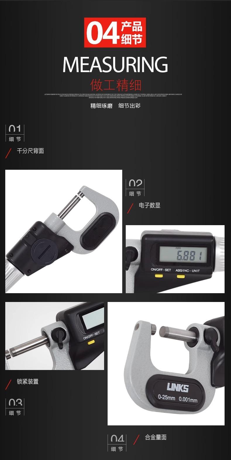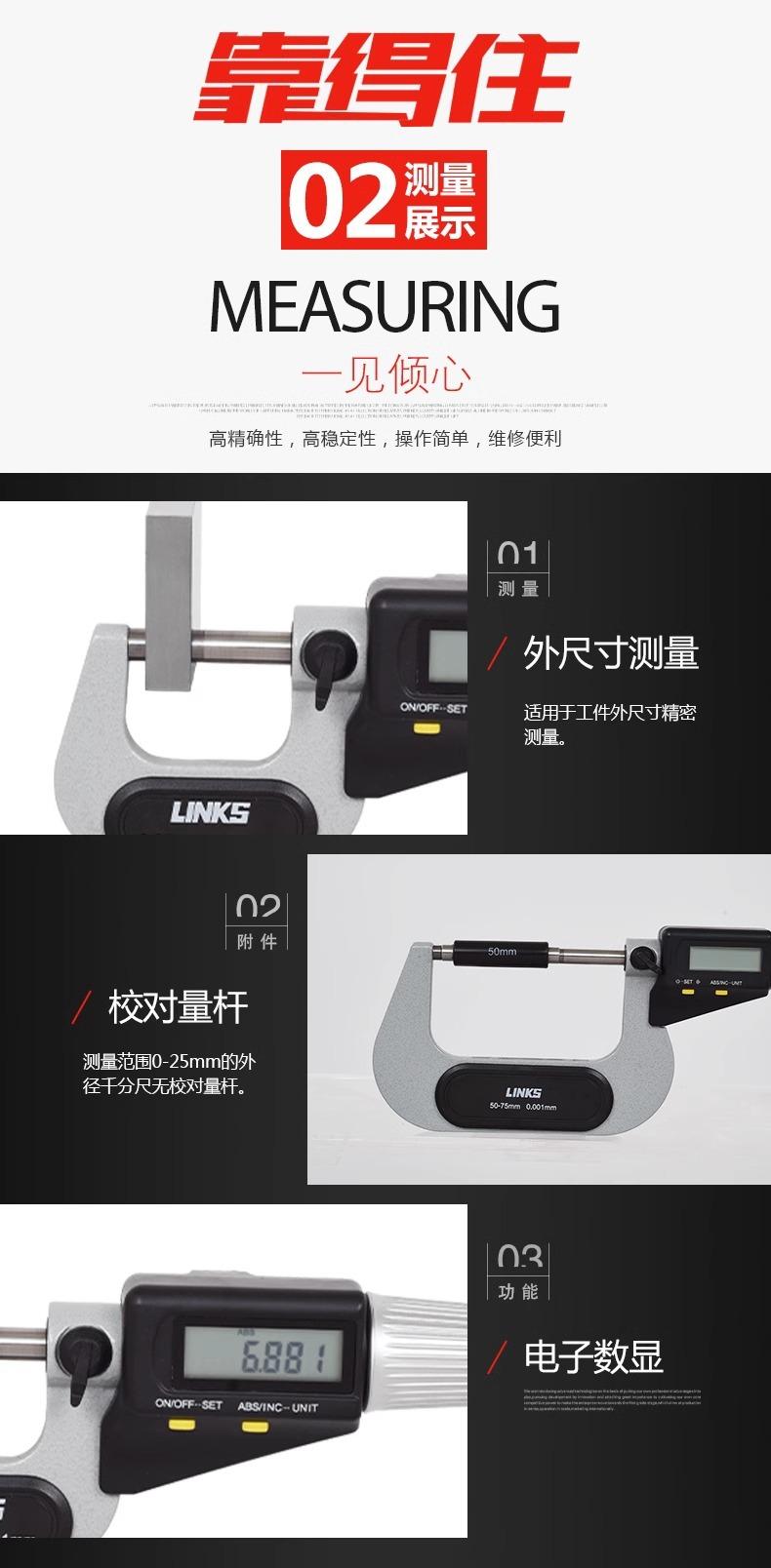 Micrômetro de parafuso de display digital mecânico de alta precisão 0-25-50-75-100mm