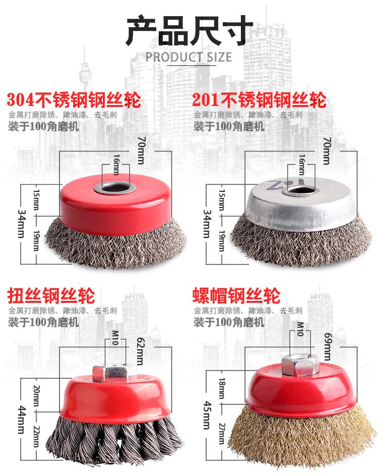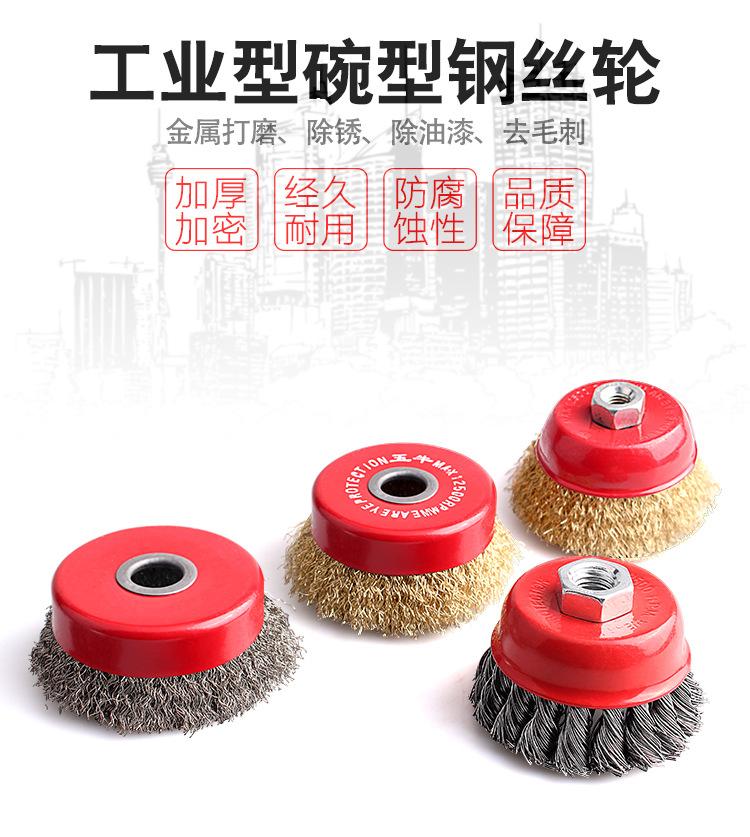 Roda de arame de aço moagem e remoção de ferrugem 100 roda de polimento de metal para rebarbadora 304 escova de arame de bola de moagem em forma de tigela de aço inoxidável