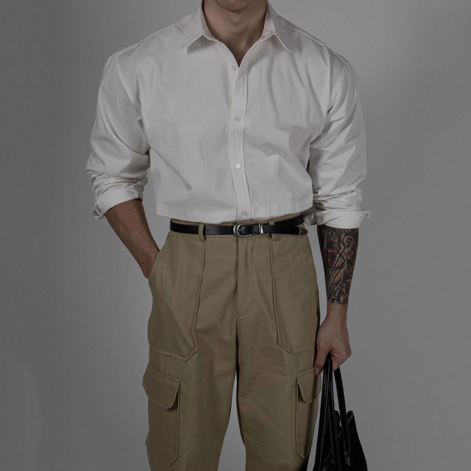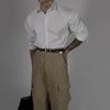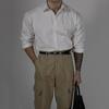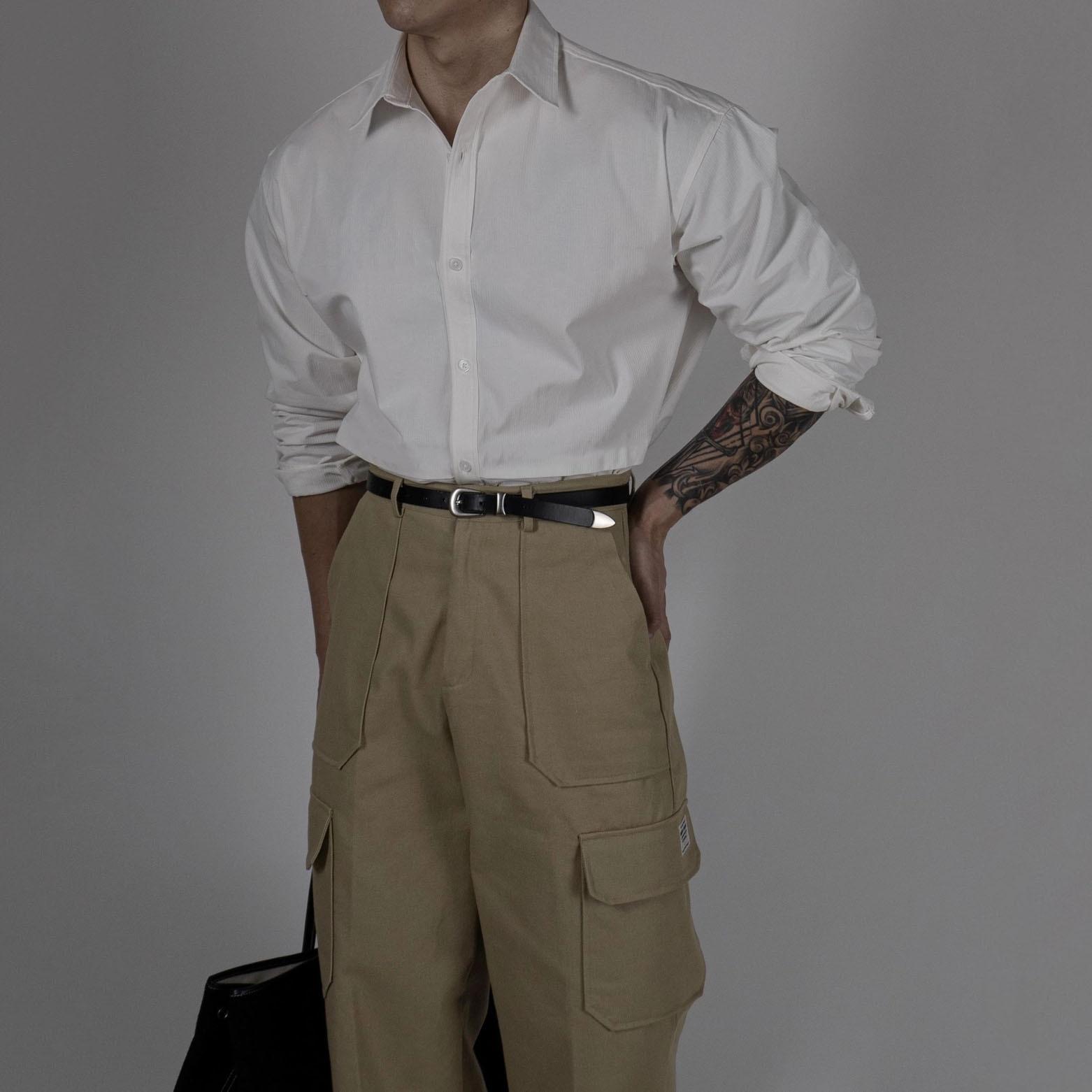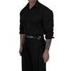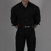 Camisa branca masculina de manga comprida Primavera Fitness Camisa elástica Slim-fit Músculo cor sólida Camisa de lapela esportiva para homens