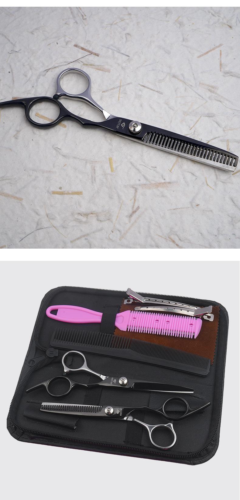 Fábrica atacado tesoura de barbeiro tesoura de cabeleireiro tesoura plana franja fina tesoura de dente de cabelo desfiado prata tesoura preta terno doméstico