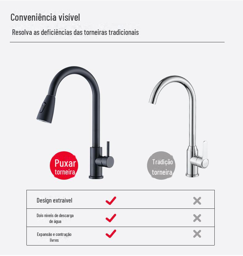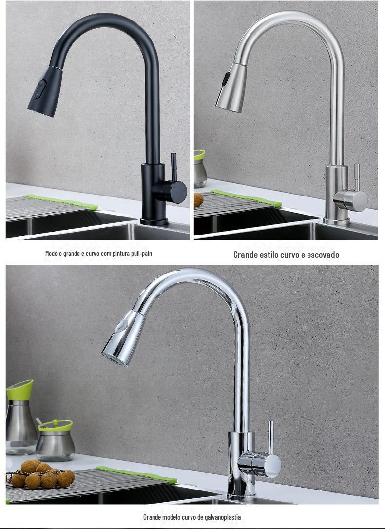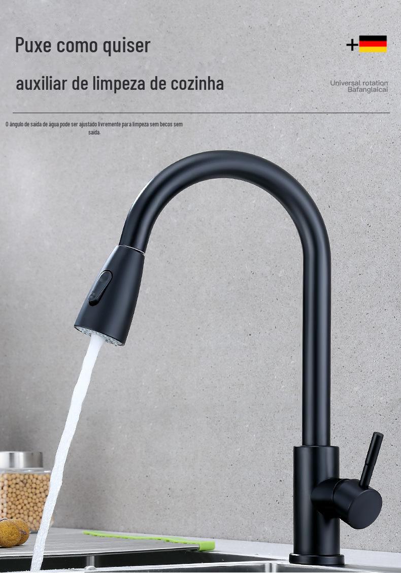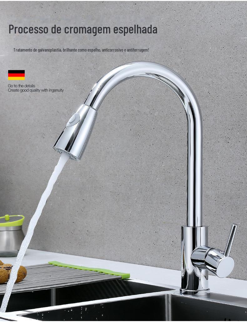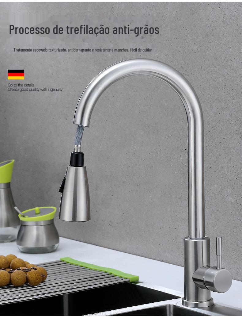 Torneira extraível de cozinha de aço inoxidável transfronteiriça água quente e fria pia pia pia universal torneira quente e fria