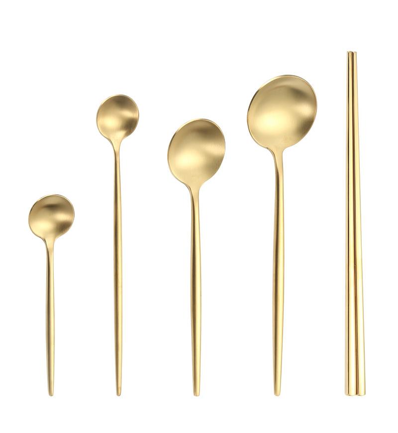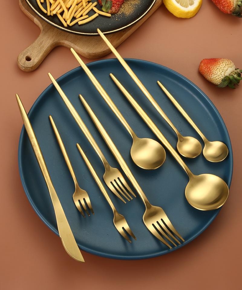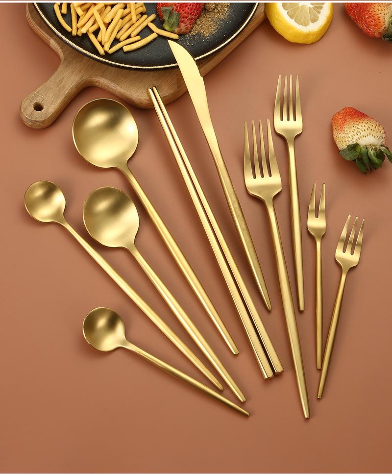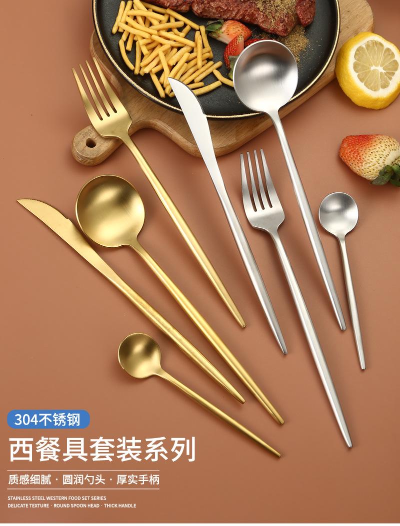 Thick golden-304 spoon, Thick golden-304 fork, Thick golden-420 dinner knife, Thick gold-304 spoon, Thick gold...