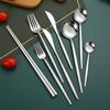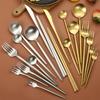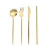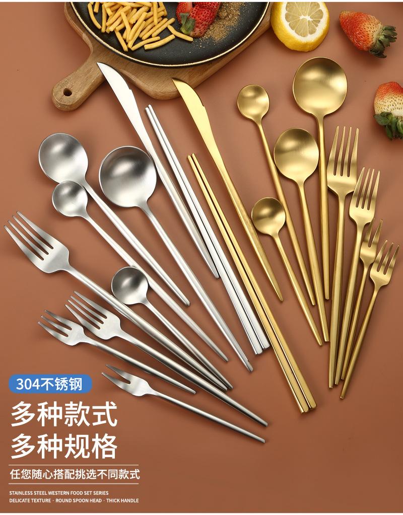 Transfronteiriço 304 de espessura de aço inoxidável Português talheres de ouro bife faca garfo colher terno pauzinhos punho redondo garfo de frutas