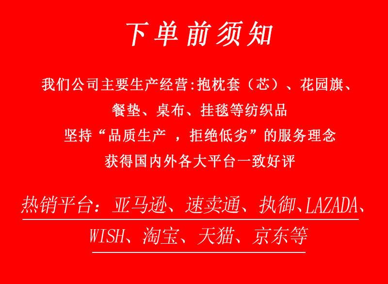 7. Nossa fábrica pode fornecer personalização de uma variedade de tecidos, como linho, pelúcia curta, pele de pêssego (poliéster), etc. Os compradores podem fornecer fotos para personalizar padrões de um ou dois lados, e o tamanho também pode ser personalizado.