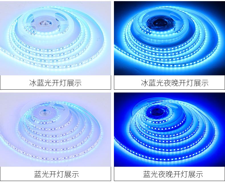 Fita de Luz LED 12V Baixa Tensão 2835 Azul Gelo Flexível Autoadesiva 8mm Alto Brilho Luz para Vitrine Calha Luz de Ambiente para Uso Interno