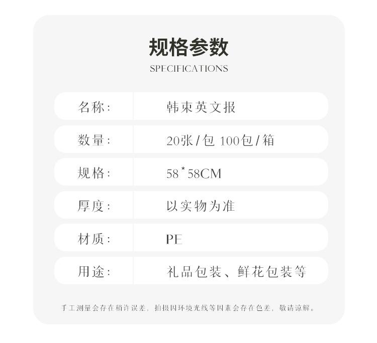 Inglês Coreano Pacote de Papel Novo Material de Papel de Embrulho de Flores à Prova D'Água Atacado Papel de Embrulho de Flores do Dia dos Namorados