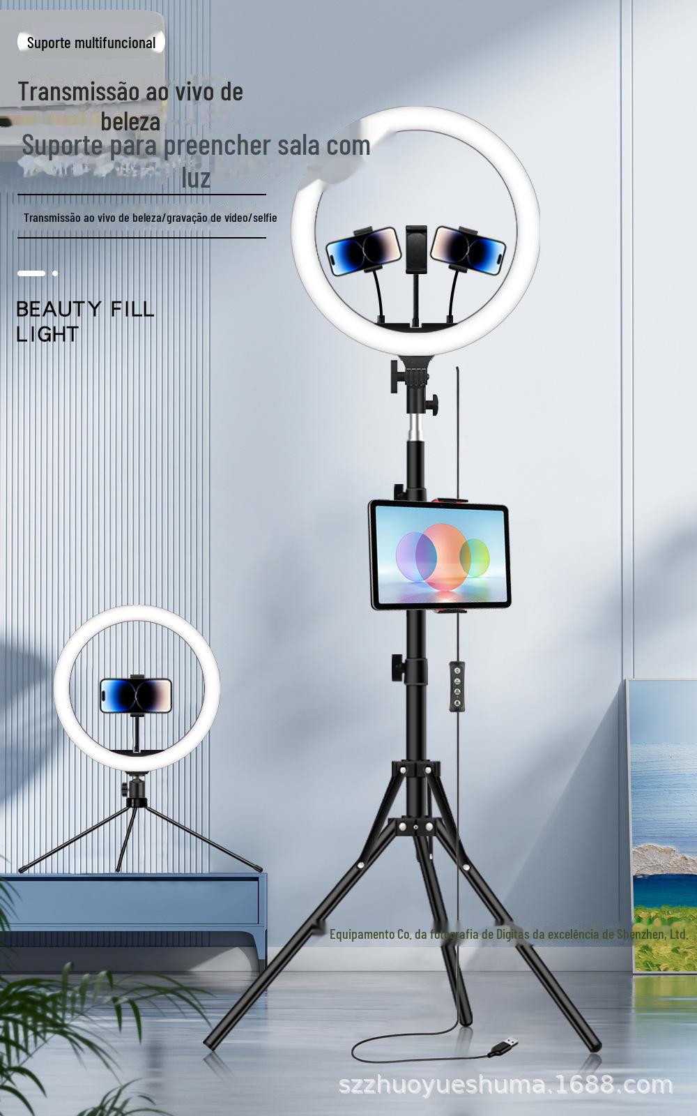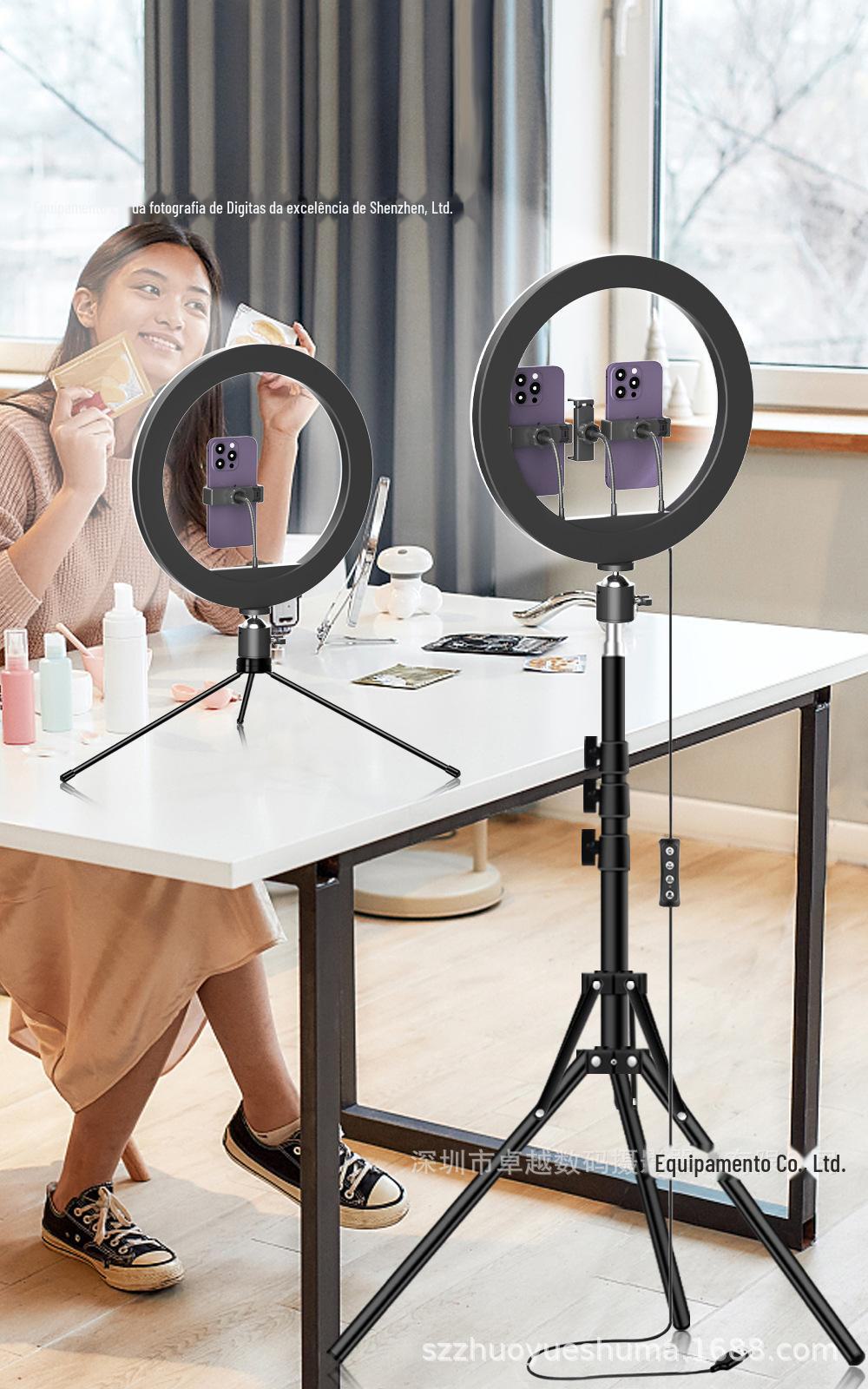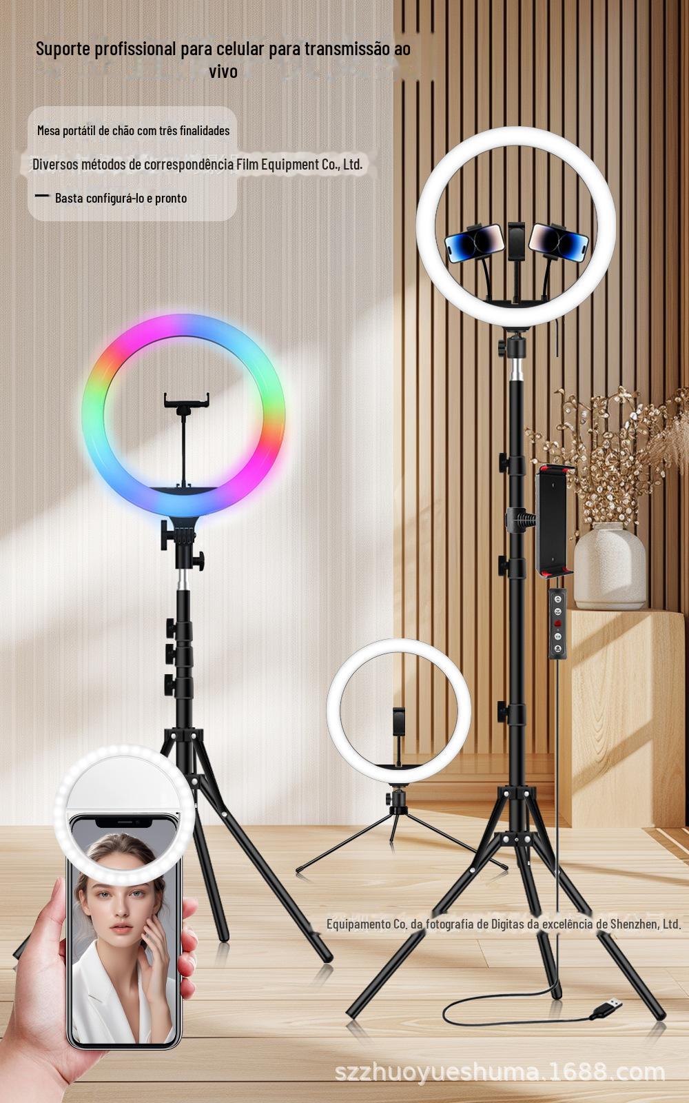 Suporte de chão portátil vermelho para celular, luz viva, atacado, rede, RGB, beleza, luz viva, anel de luz de 10 polegadas
