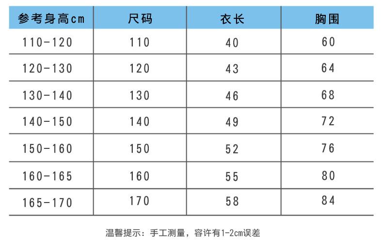 110cm, 120cm, 130cm, 140cm, 150cm, 160cm, 170cm