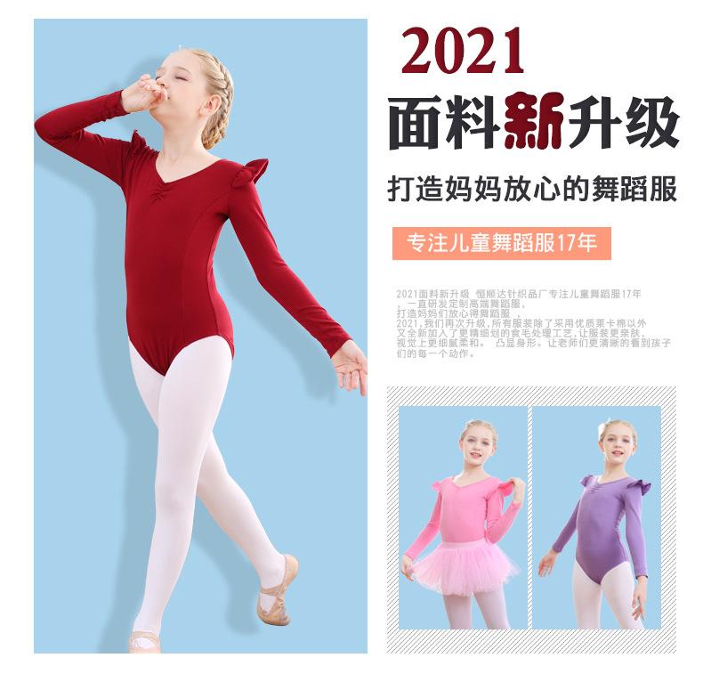 Roupas de Prática de Dança Infantil, Roupas de Dança de Manga Comprida, Macacões para Meninas, Roupas de Balé Femininas para Exame de Grau na Primavera, Roupas de Ginástica