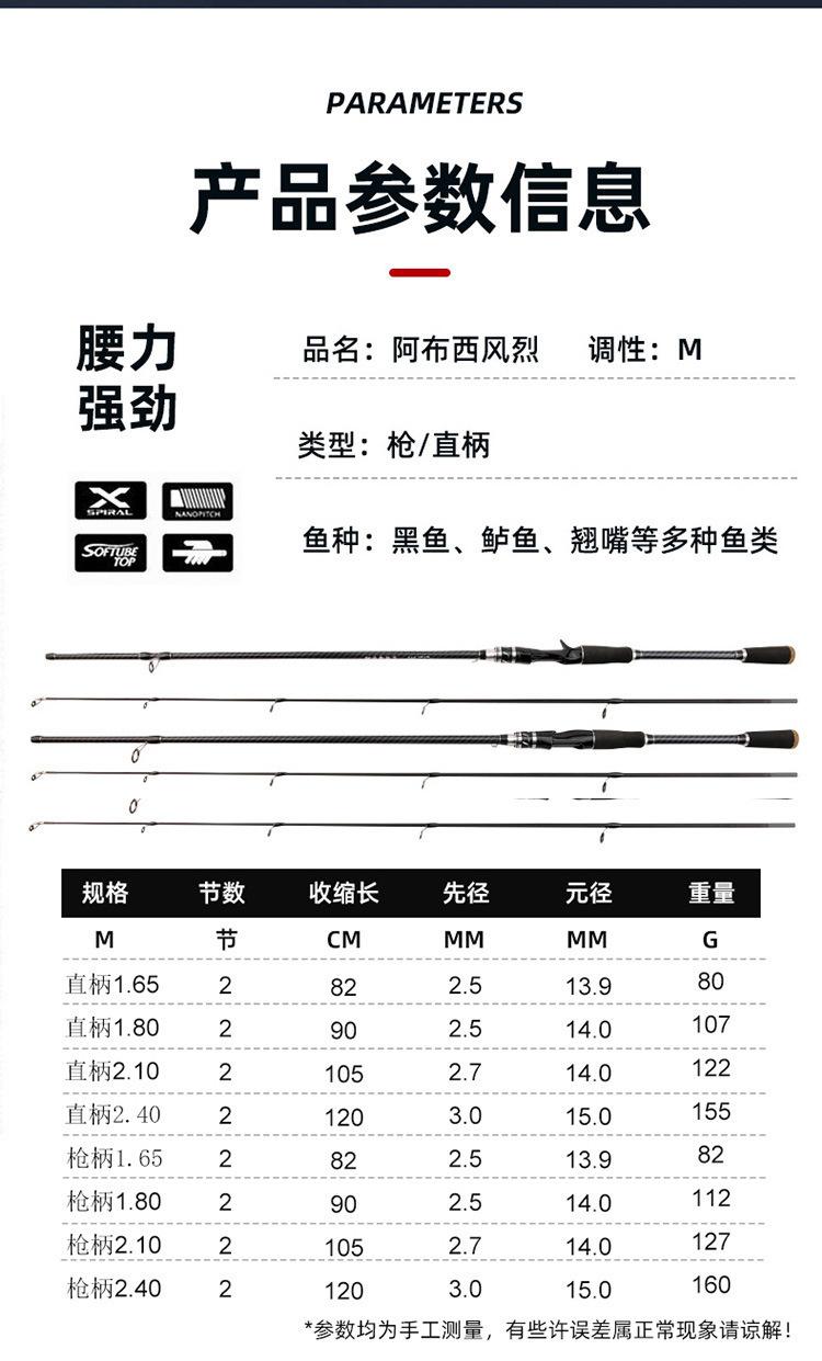 Haste de estrada de carbono vara geral atacado 2.4 alça de arma alça reta plugue preto engrenagem de pesca vara de pesca vara de pesca vara de estrada de pesca marítima