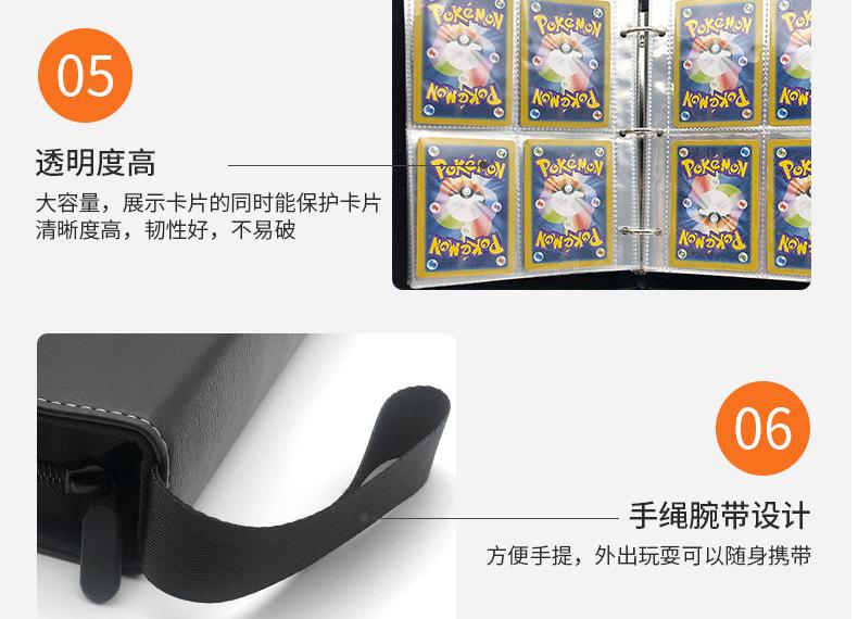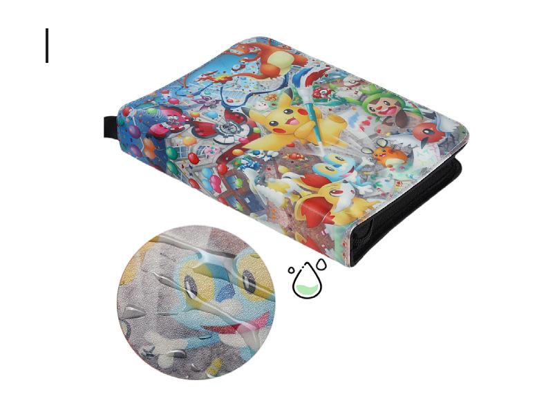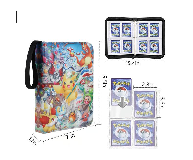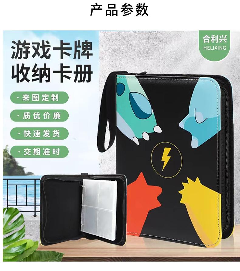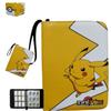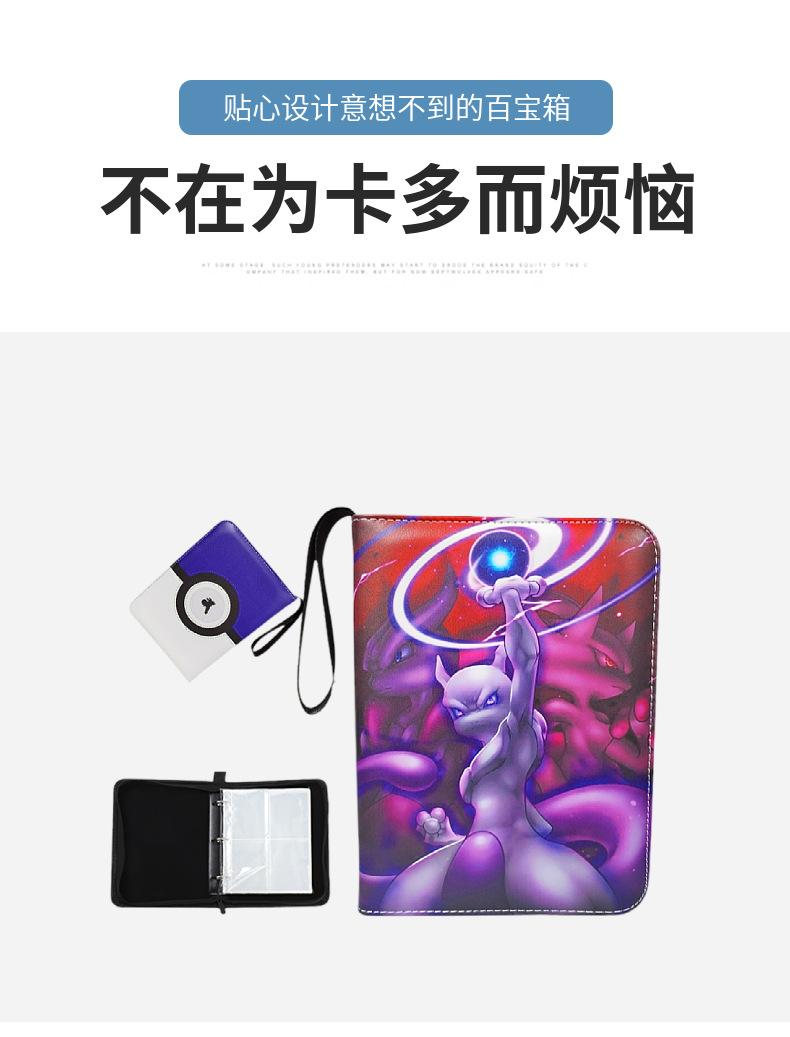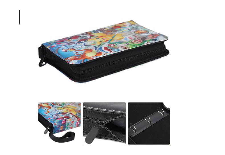 Livro de Coleção de Cartas de Animação de Jogo Pokemon Livro de Cartas de Jogo Bidimensional Grades de 4 Quadrados Couro Zíper Armazenamento Livro de Cartas
