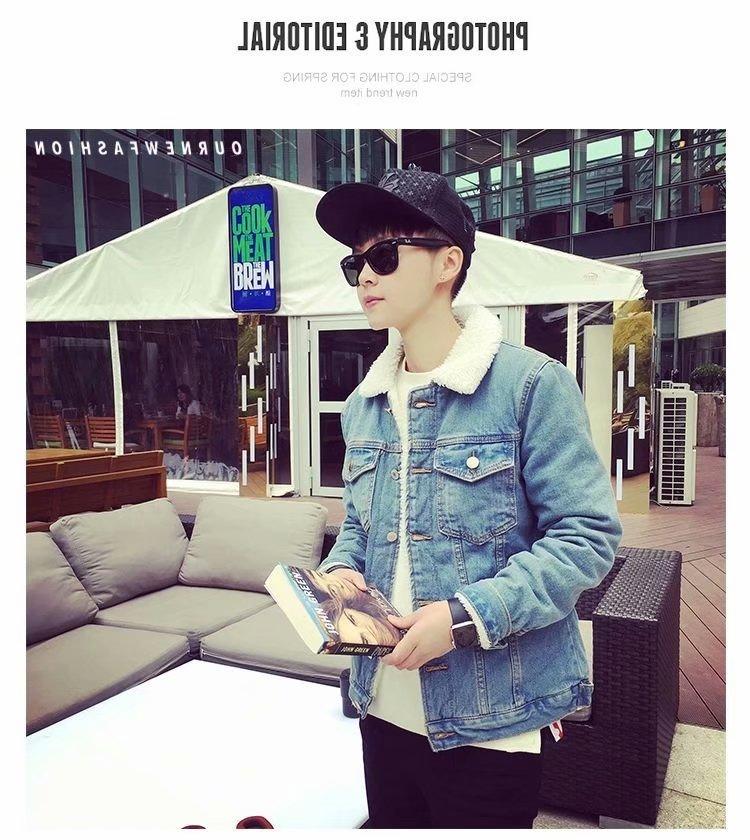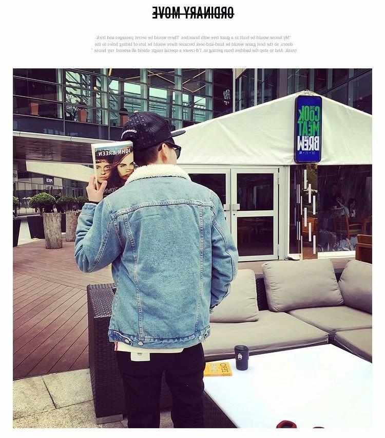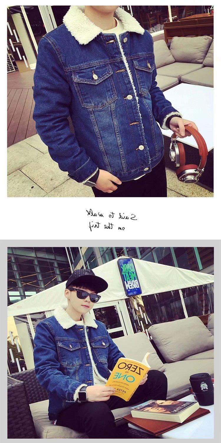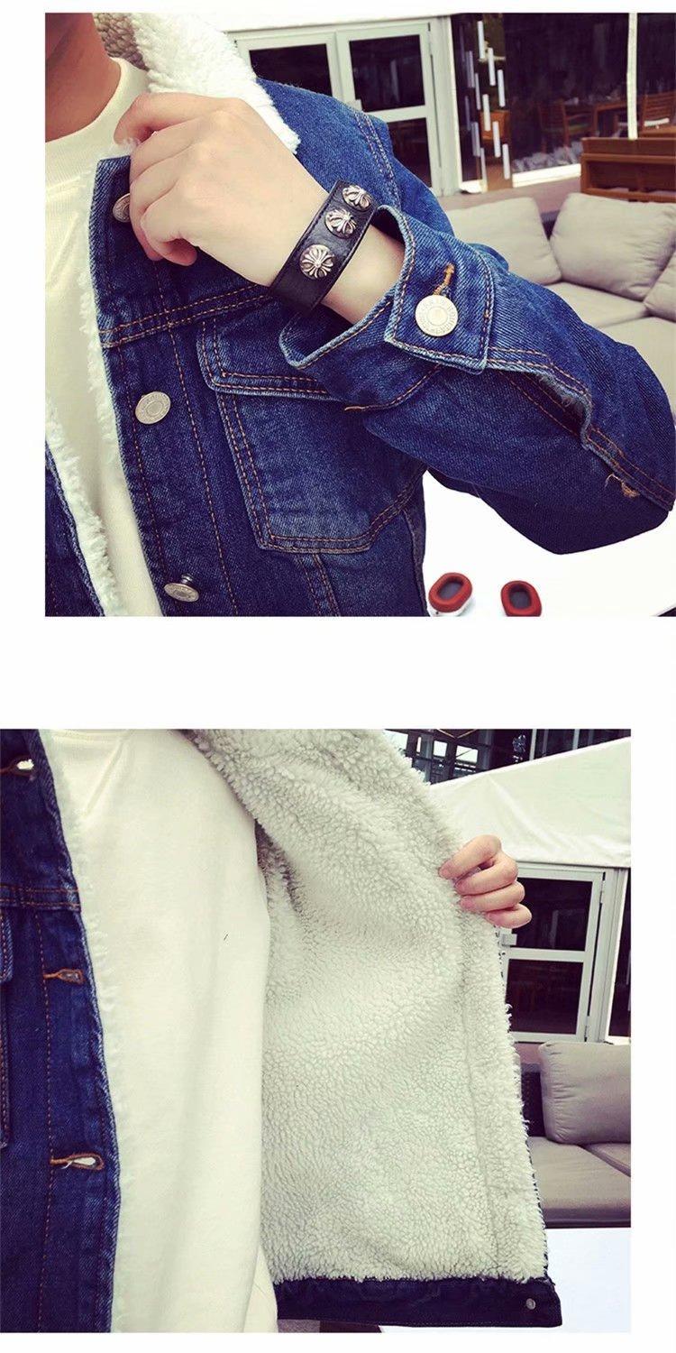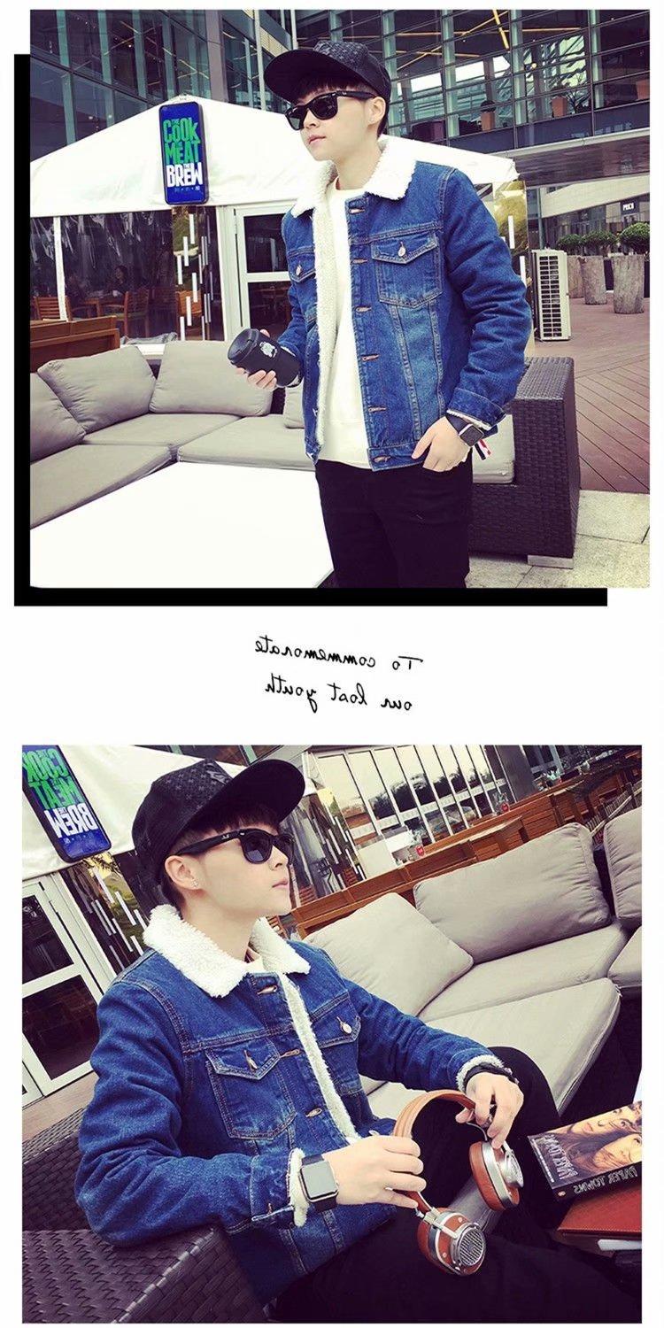 Jaqueta jeans de inverno forrada de lã espessa para todos os jogos Jaqueta masculina slim-fit Imitação de lã de cordeiro casaco acolchoado de algodão moda em roupas