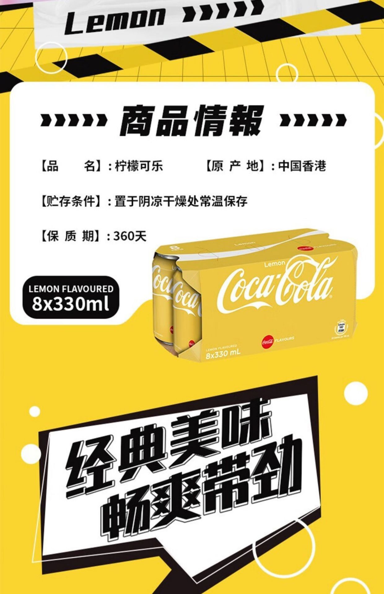 Hong kong version of lemon coca-cola 330ml*8 bottles