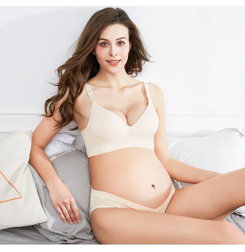 Roupa íntima grande sem aro para mulheres grávidas Período de gravidez franzido respirável cor sólida sutiã de amamentação confortável Sutiã de leite materno pós-parto