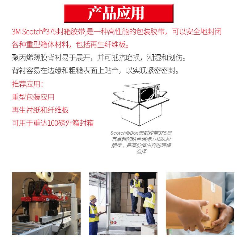A fita de vedação 3M 375 éUma fita de embalagem de alto desempenho para vedação de caixas, emendas, reoperação e outras aplicações de embalagem. Este produto tem um forte suporte de desempenho e um sistema adesivo hot melt estável e sensível à pressão.