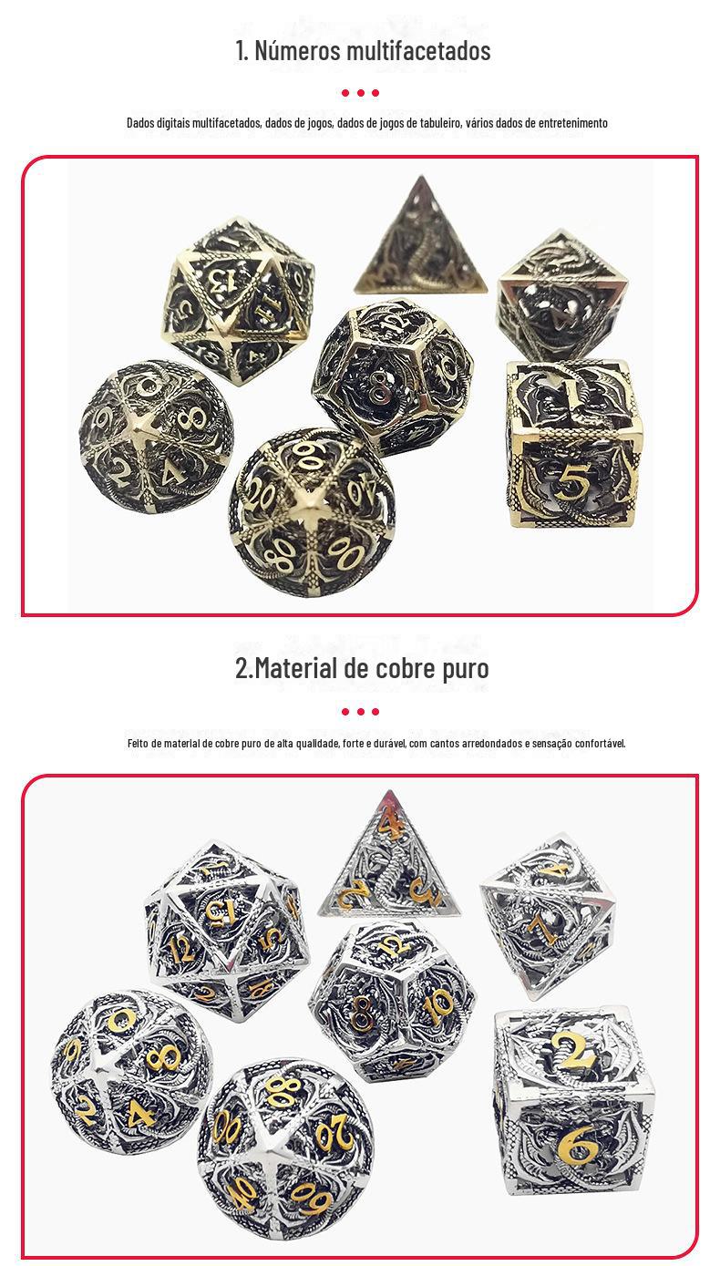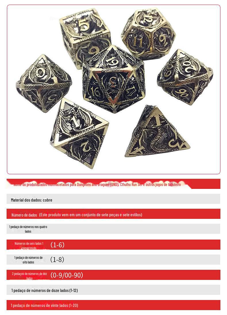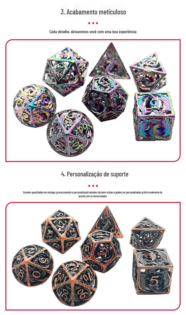 Dados Ocos Personalizados da Metal Dice Dice Dragon Dice Novos Dados Temáticos Criativos de Dungeons & Dragons
