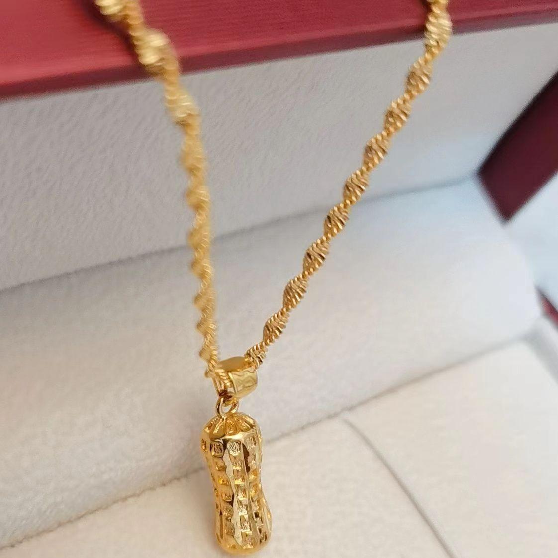 Colar pingente de amendoim moda água ondulação clavícula corrente elegante feminino sorte colar cobre banhado a vácuo ouro