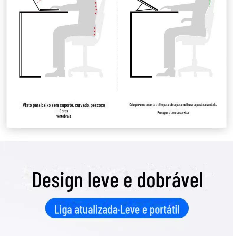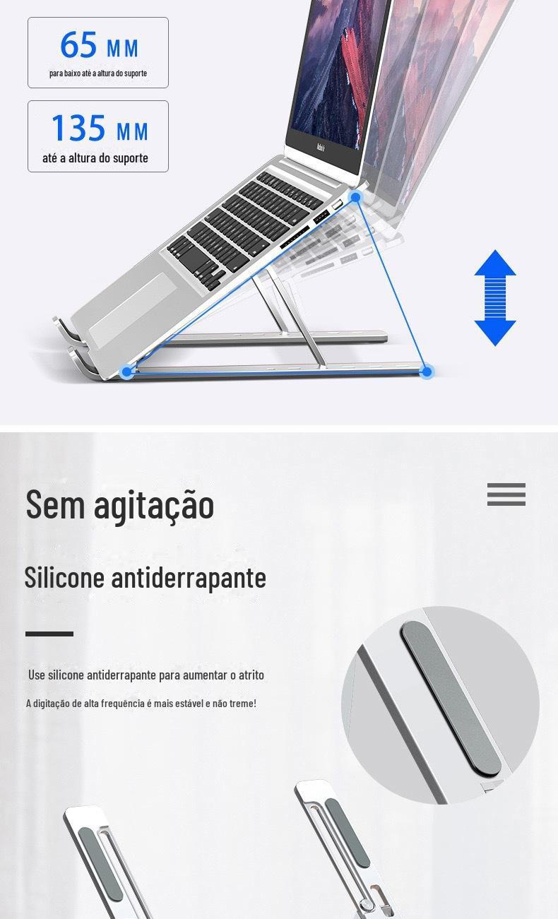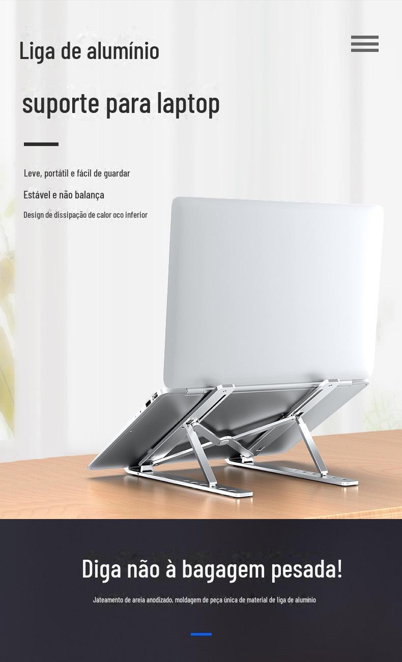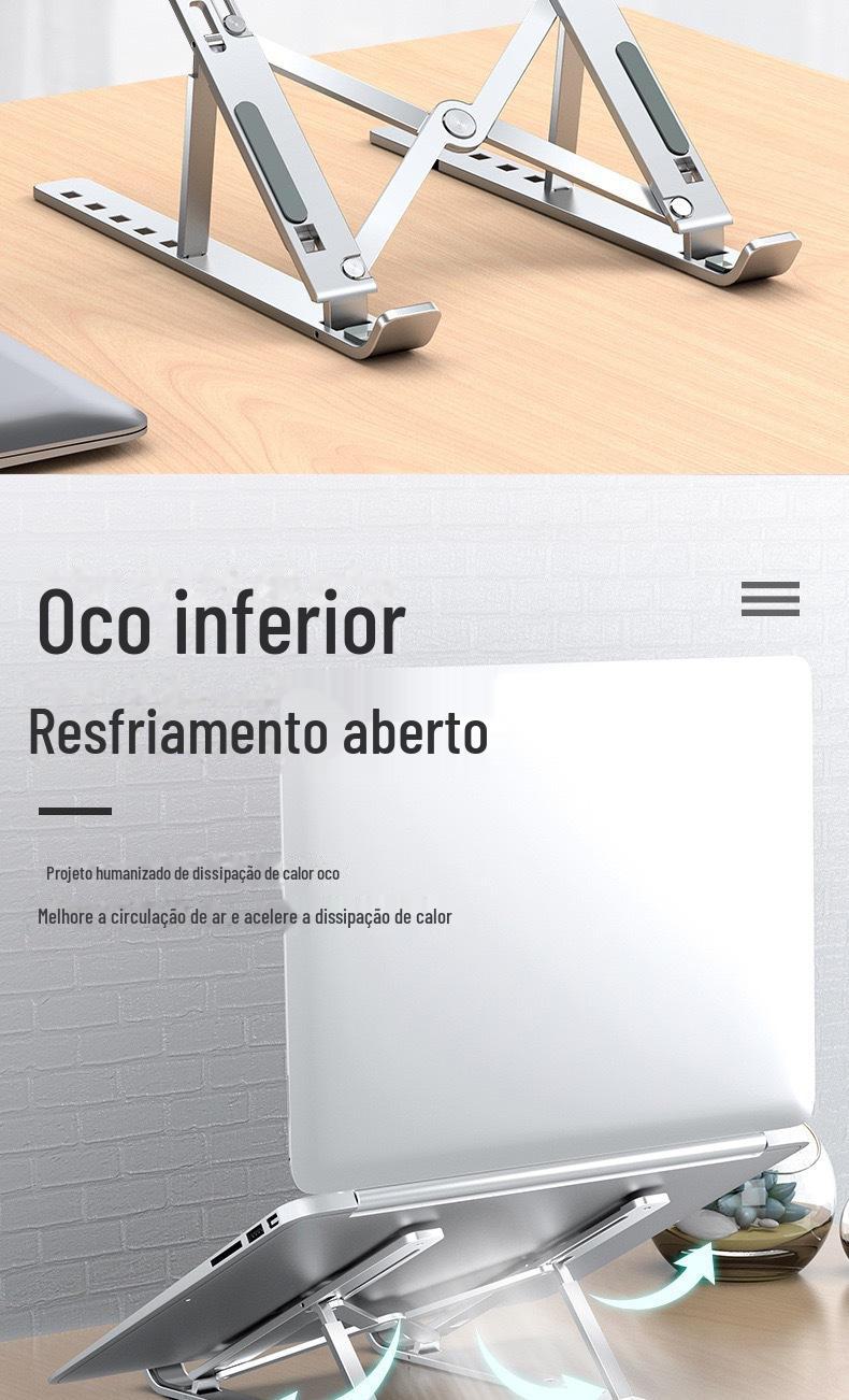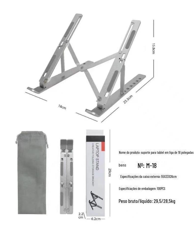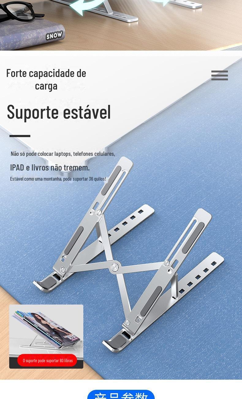 Suporte de notebook de liga de alumínio de metal de armazenamento Tablet Suporte de computador de liga de alumínio dobrável Elevação de mesa vertical