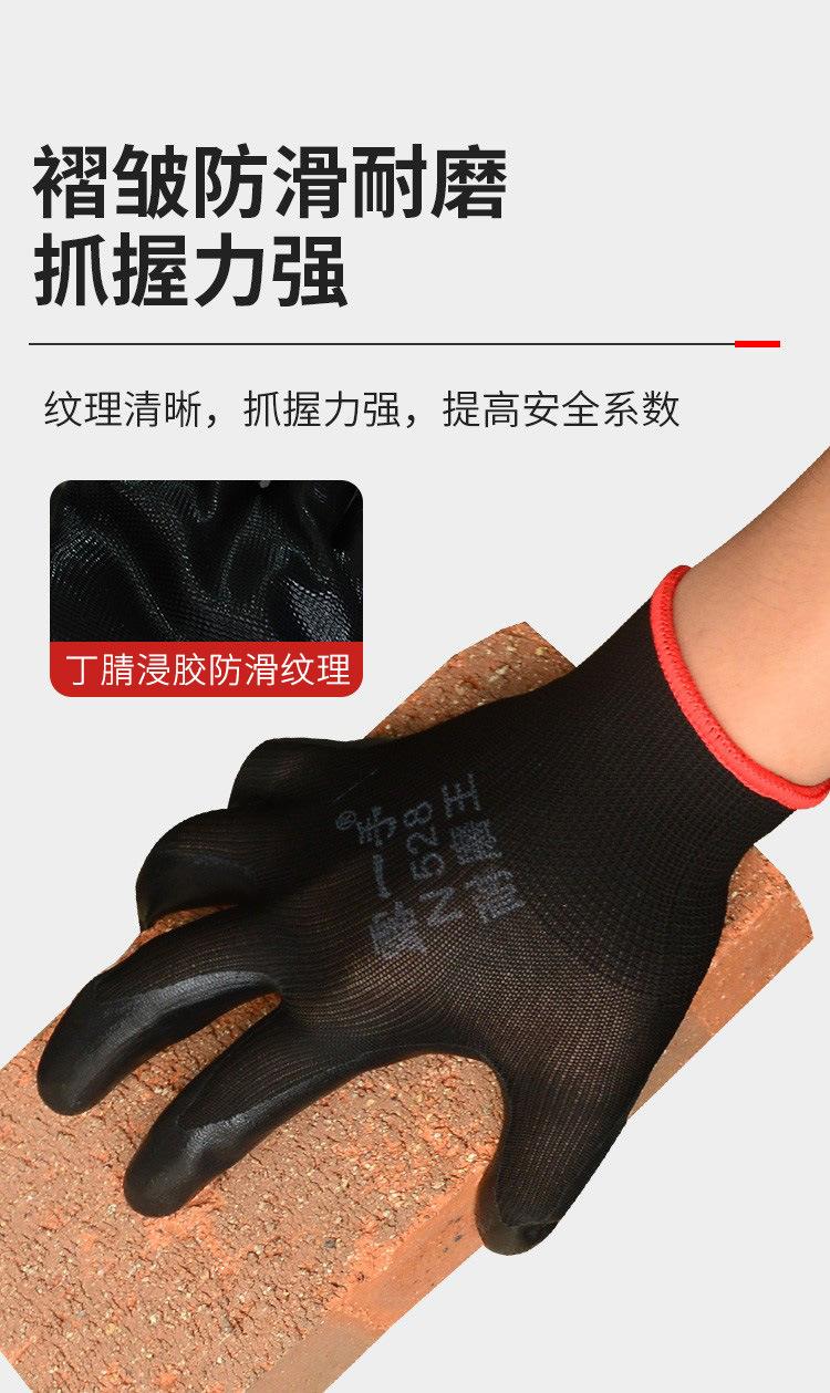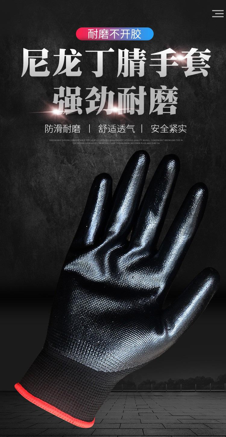 Luvas de proteção de trabalho resistentes ao desgaste no local de construção antiderrapantes espessadas luvas finas de borracha de nitrila de nylon para mulheres para homens