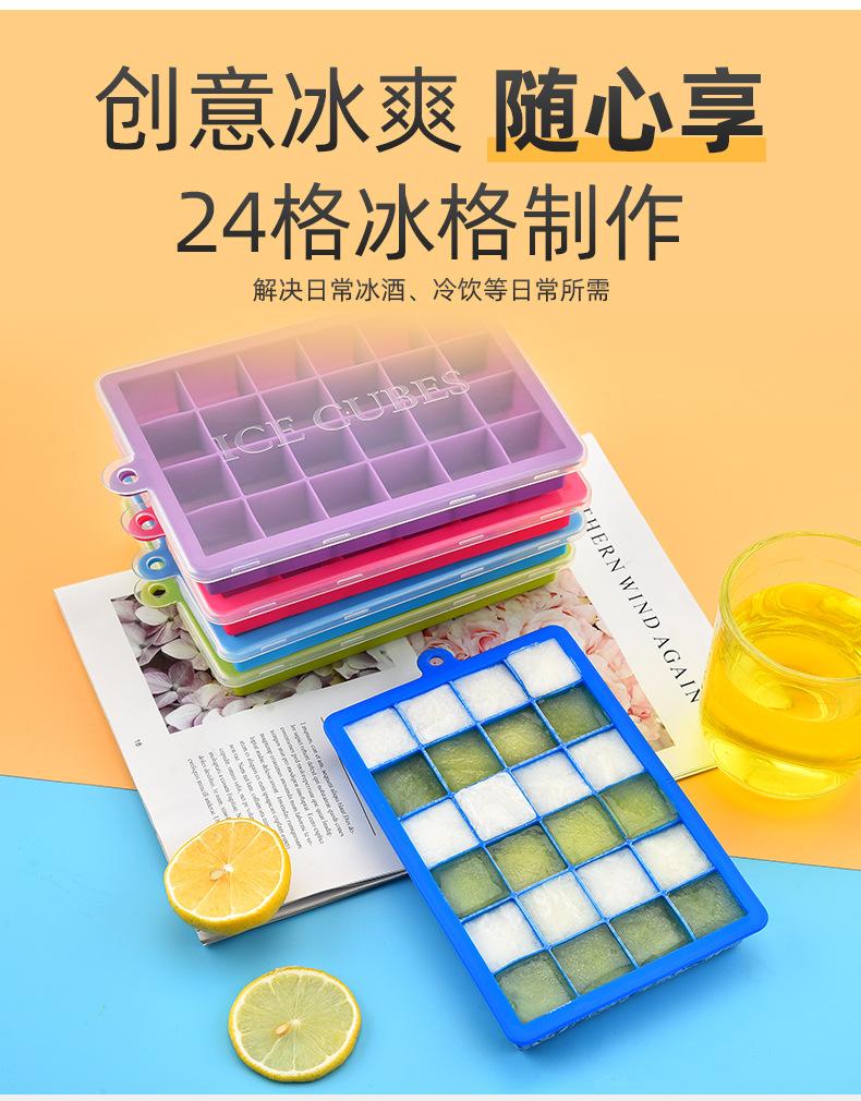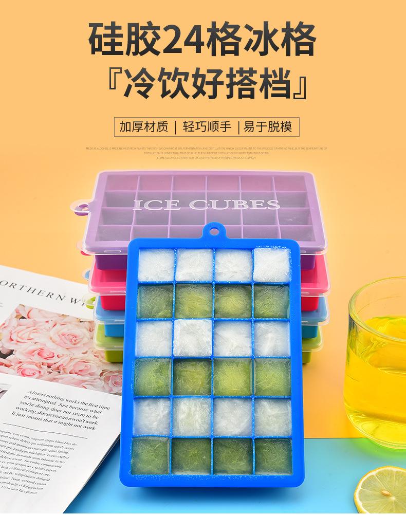Fábrica de atacado Silicone Ice Cube 24 grade com tampa criativa cubo de gelo molde Bar Ice Box fabricante de gelo em estoque