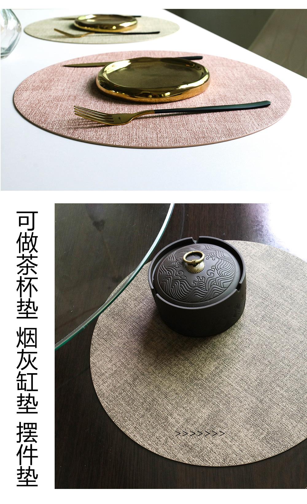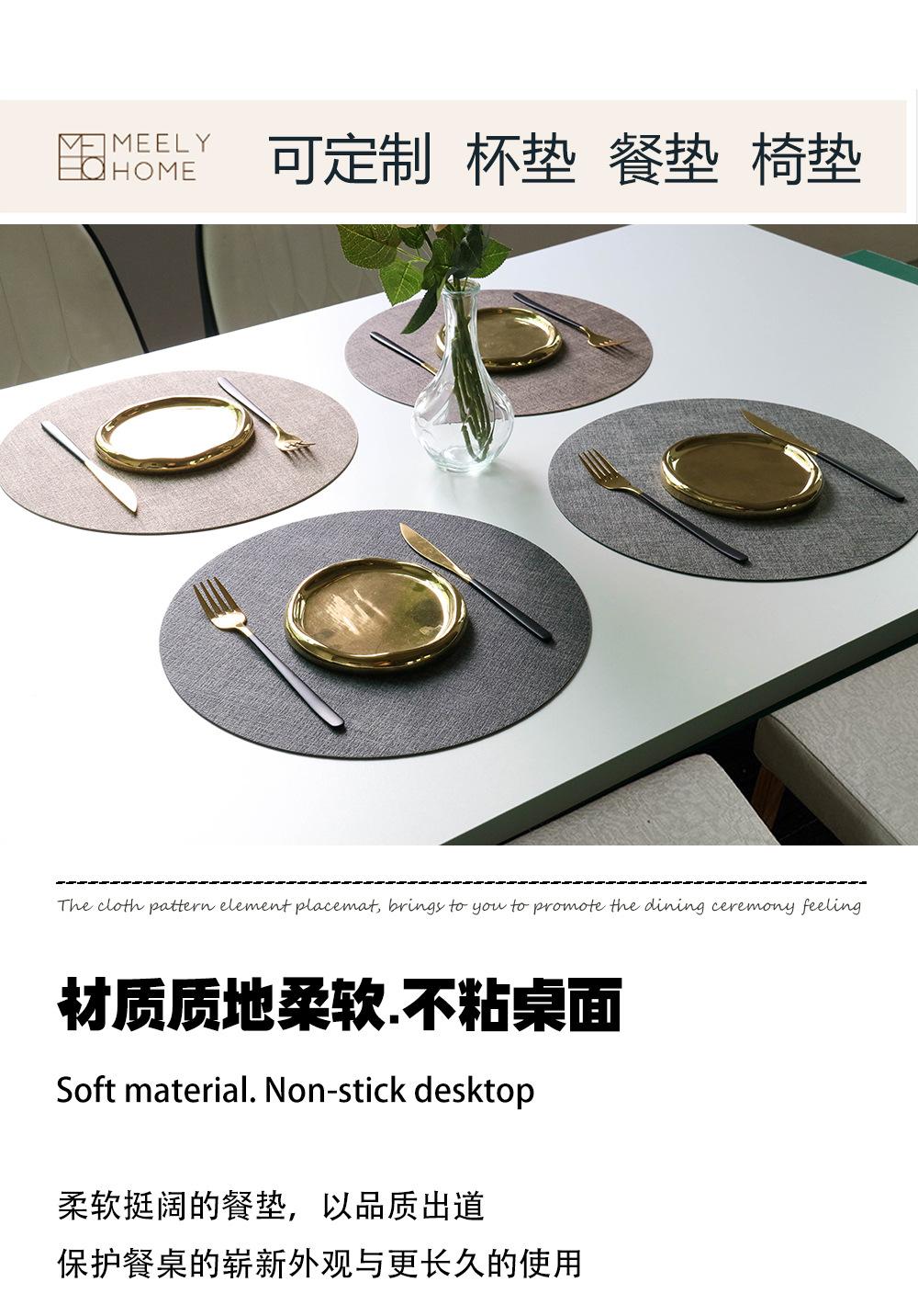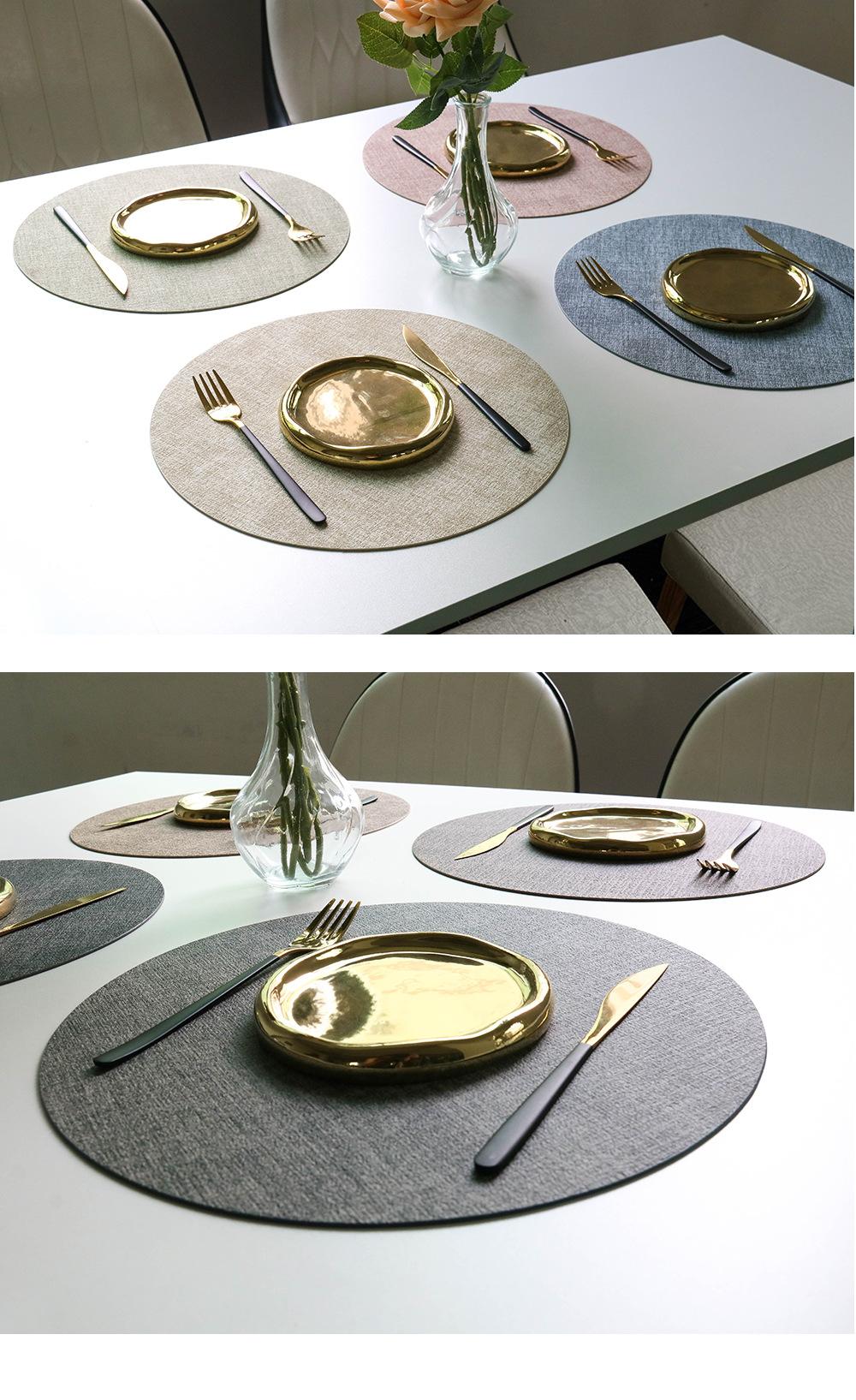 Placemat de couro de pvc redondo transfronteiriço Padrão de pano Estilo nórdico Placemat ocidental Tapete de mesa de hotel Tapete de isolamento térmico à prova de óleo à prova d'água