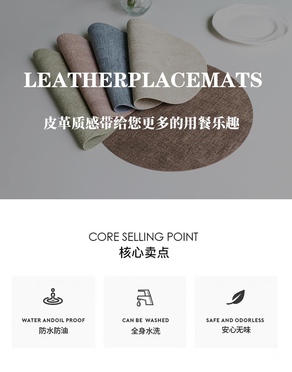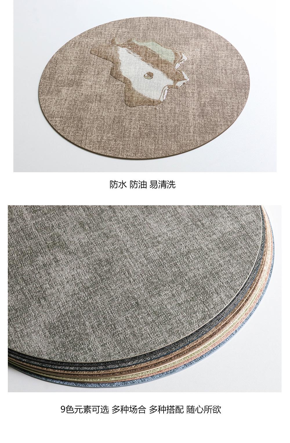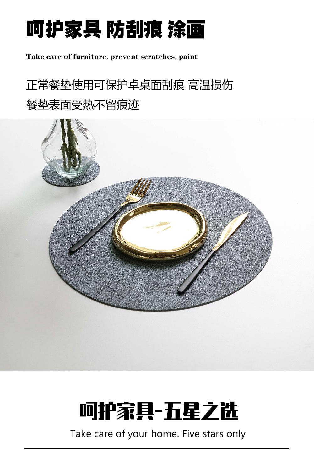 Placemat de couro de pvc redondo transfronteiriço Padrão de pano Estilo nórdico Placemat ocidental Tapete de mesa de hotel Tapete de isolamento térmico à prova de óleo à prova d'água