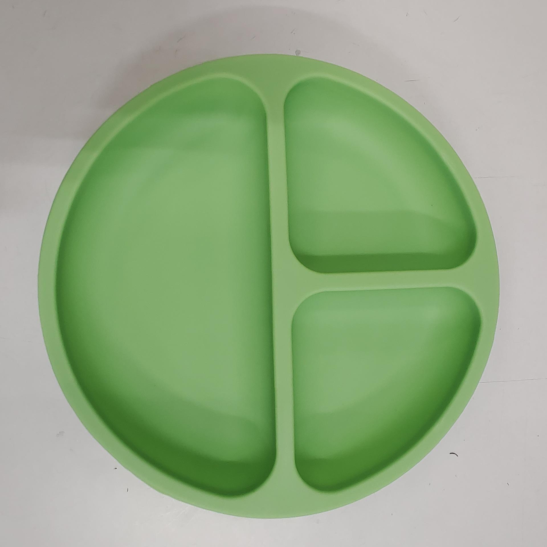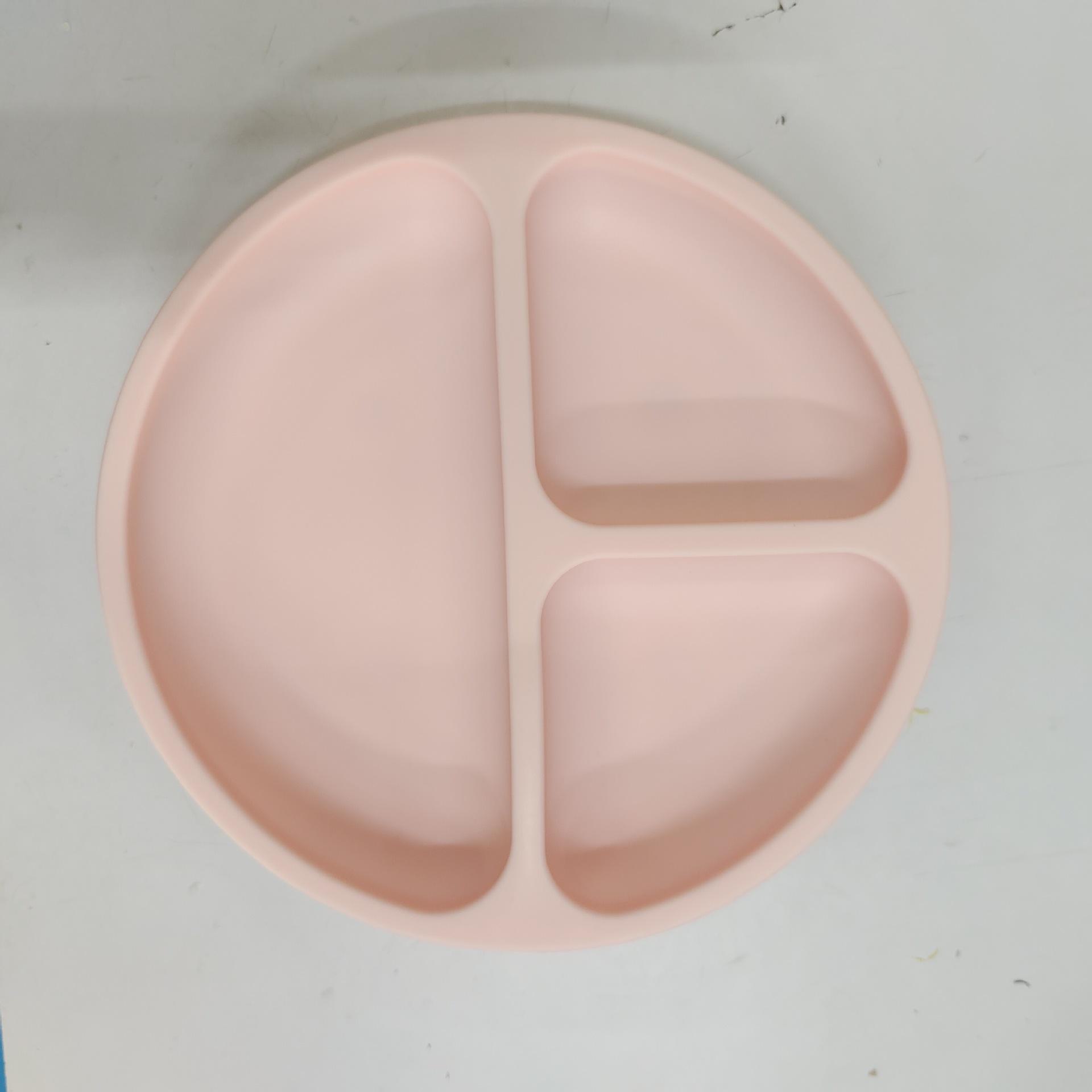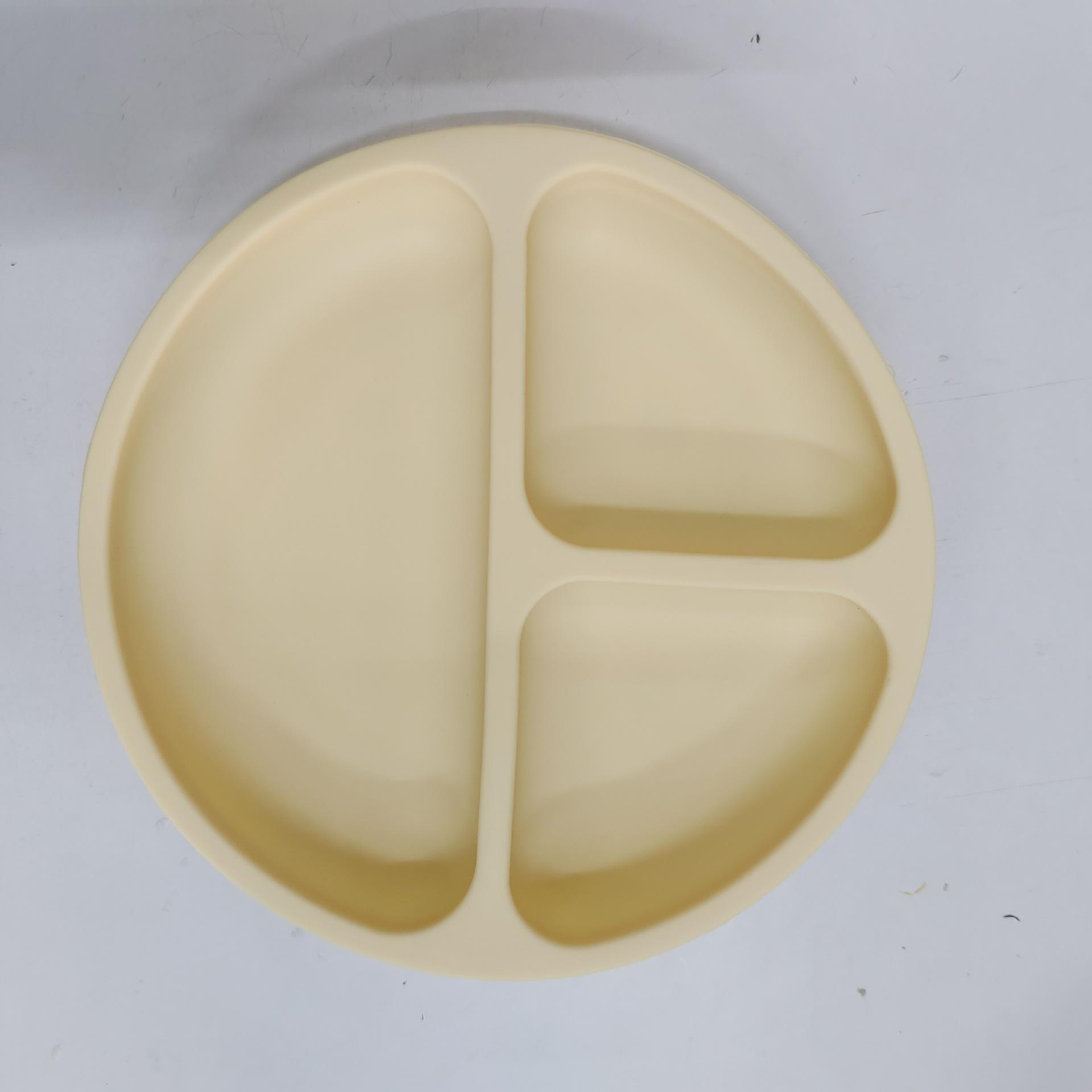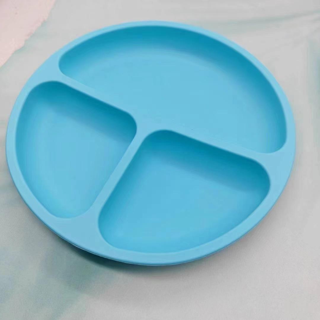 Fabricantes identificam bandeja de jantar de silicone com ventosa de três grades para alimentos para bebês, bandeja dividida para talheres infantis, bandeja de jantar de silicone de grau alimentício