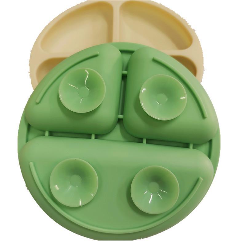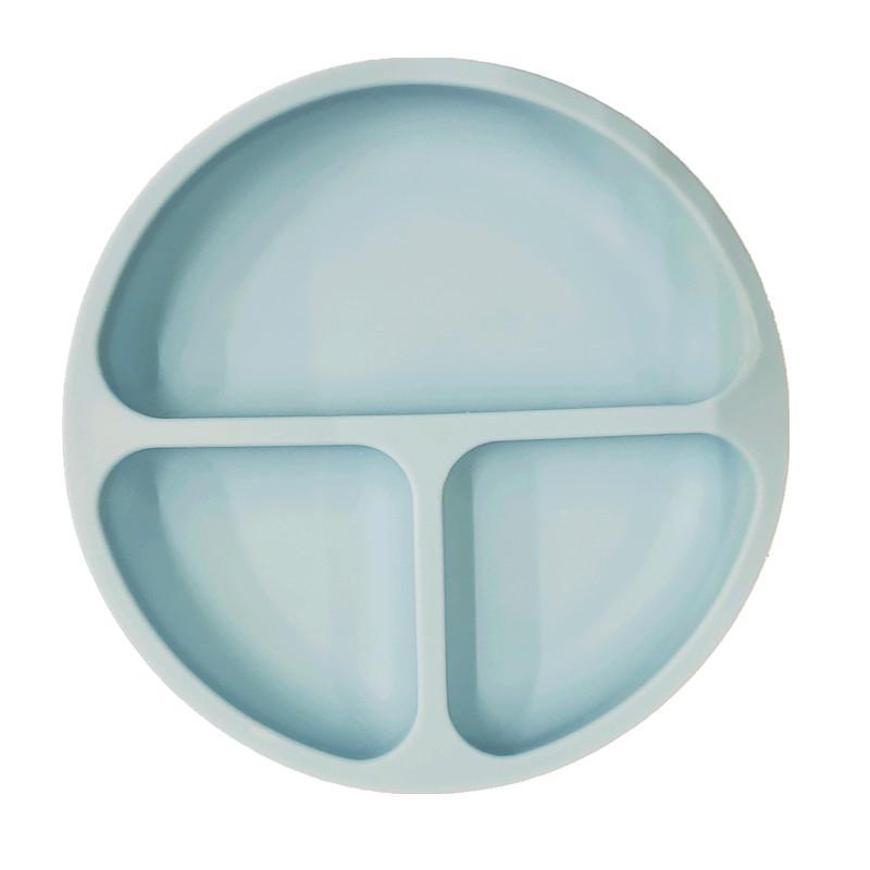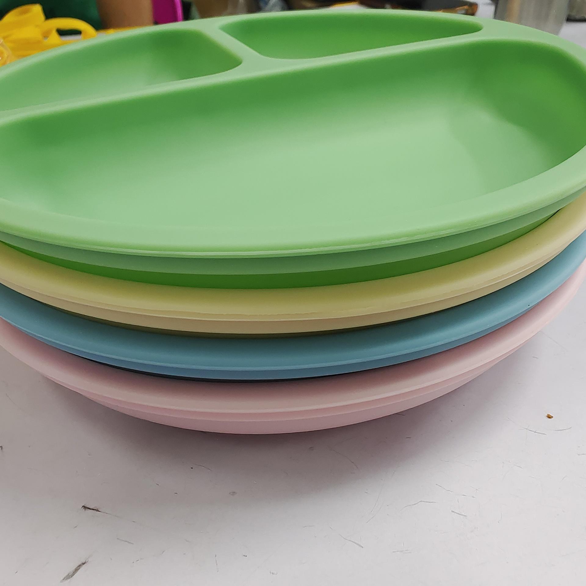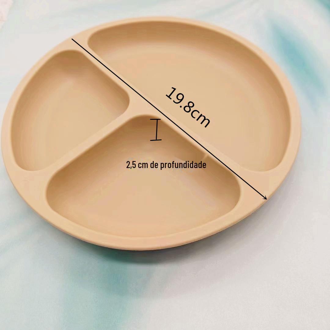 Fabricantes identificam bandeja de jantar de silicone com ventosa de três grades para alimentos para bebês, bandeja dividida para talheres infantis, bandeja de jantar de silicone de grau alimentício