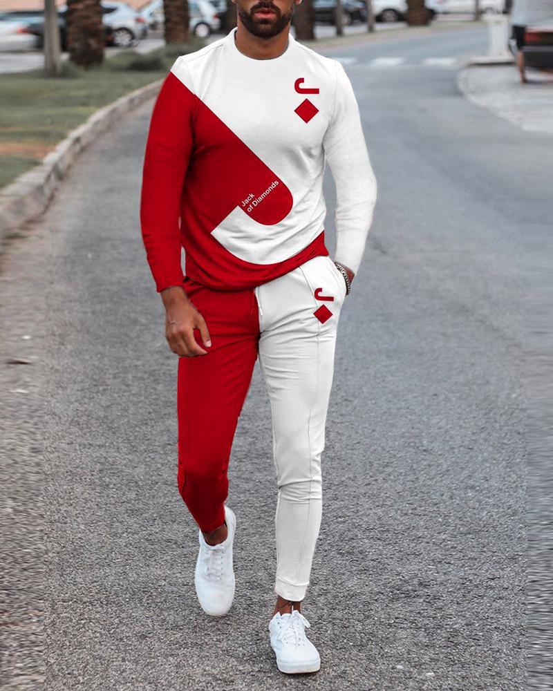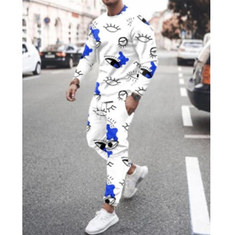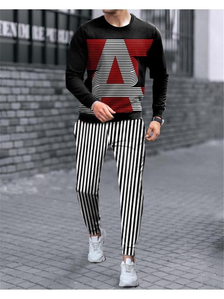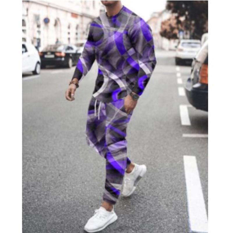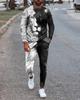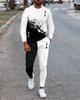 Outono comércio exterior impressão 3D sportswear homens em torno do pescoço manga comprida T-shirt + calças tamanho grande terno de lazer saída de fábrica