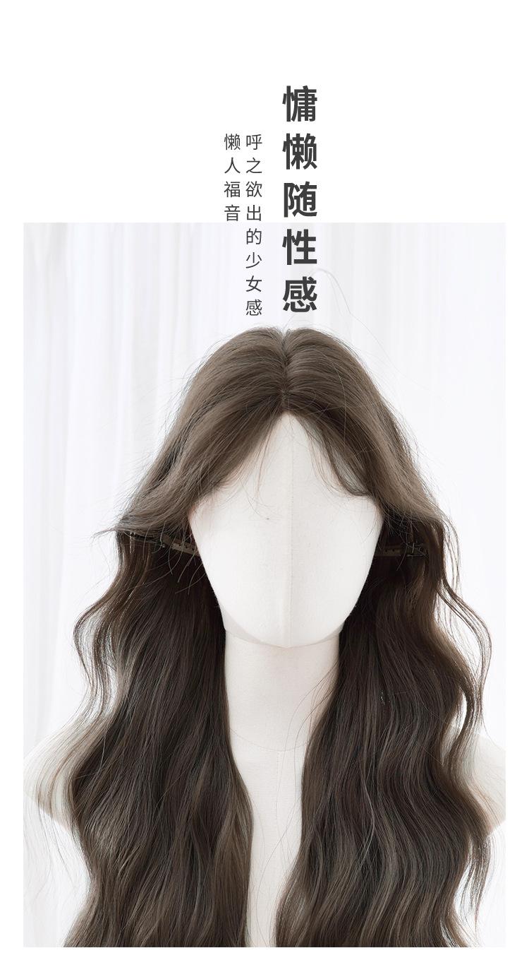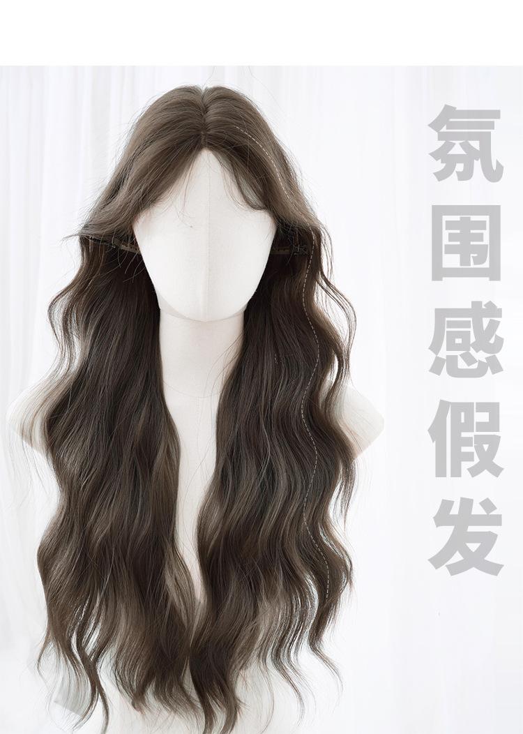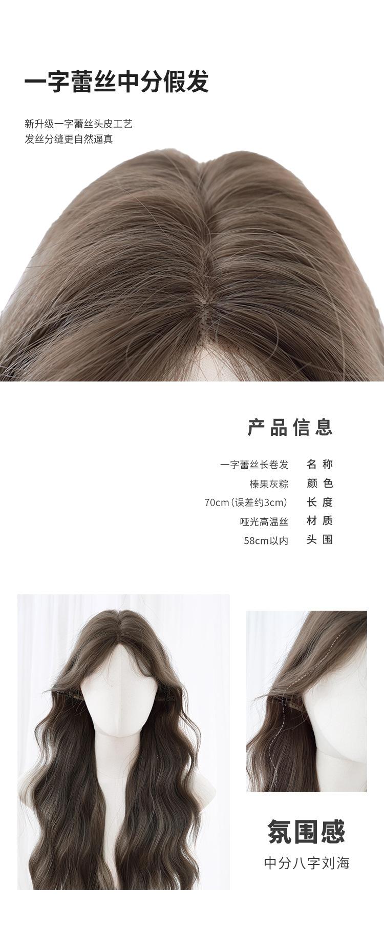 Peruca de Outono para Mulheres Atacado Transfronteiriço Diário Castanho Cinza Ondulação de Água Cabelo Longo Cacheado Renda Frontal Peruca Popular Estilo Cocar Completo