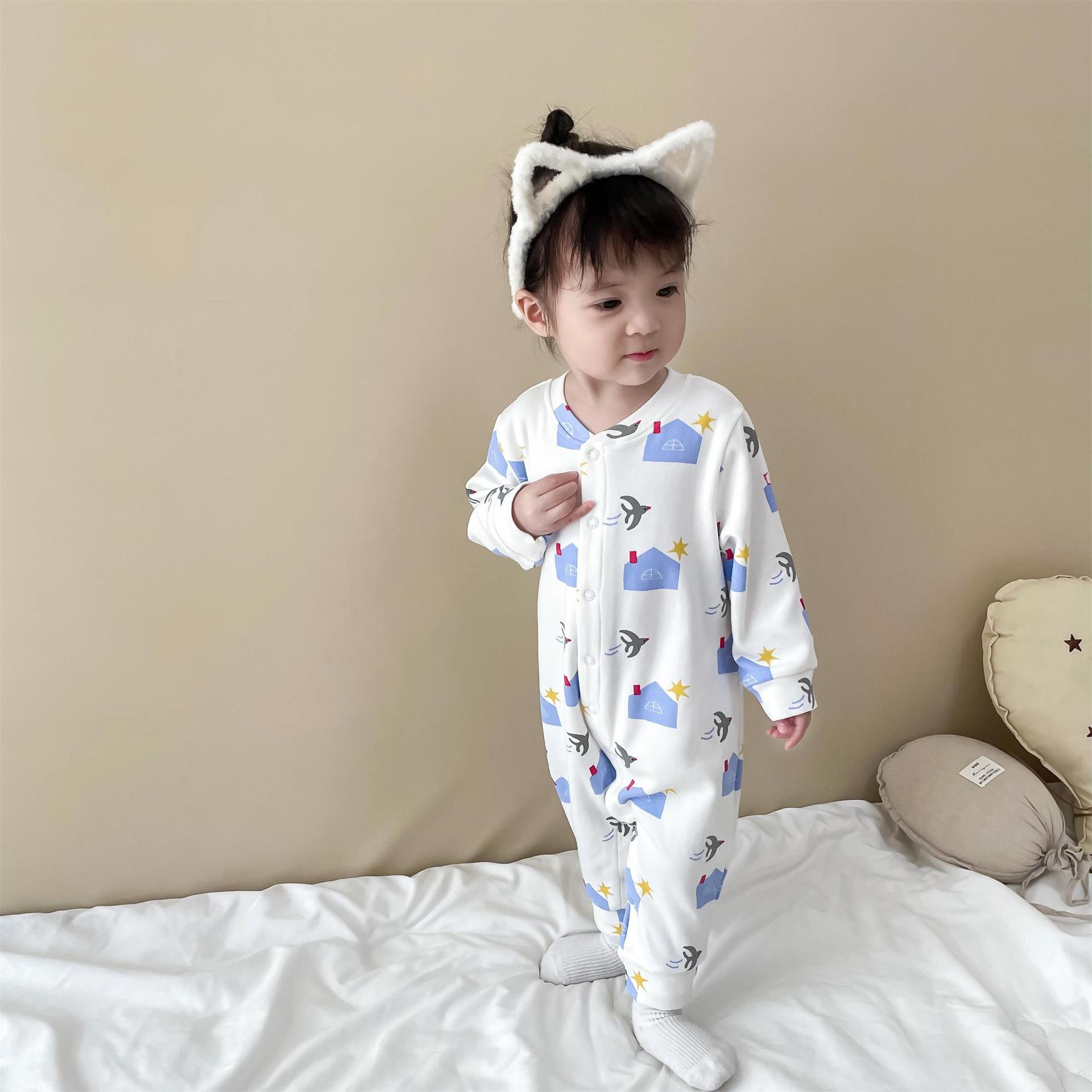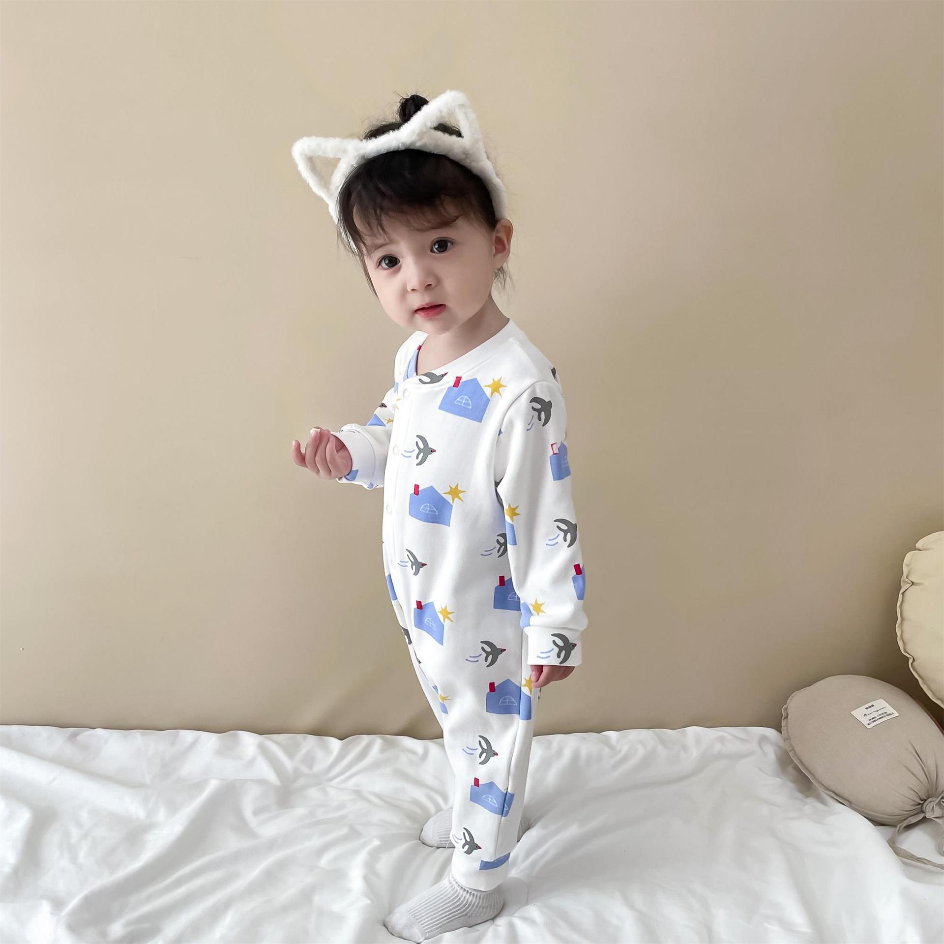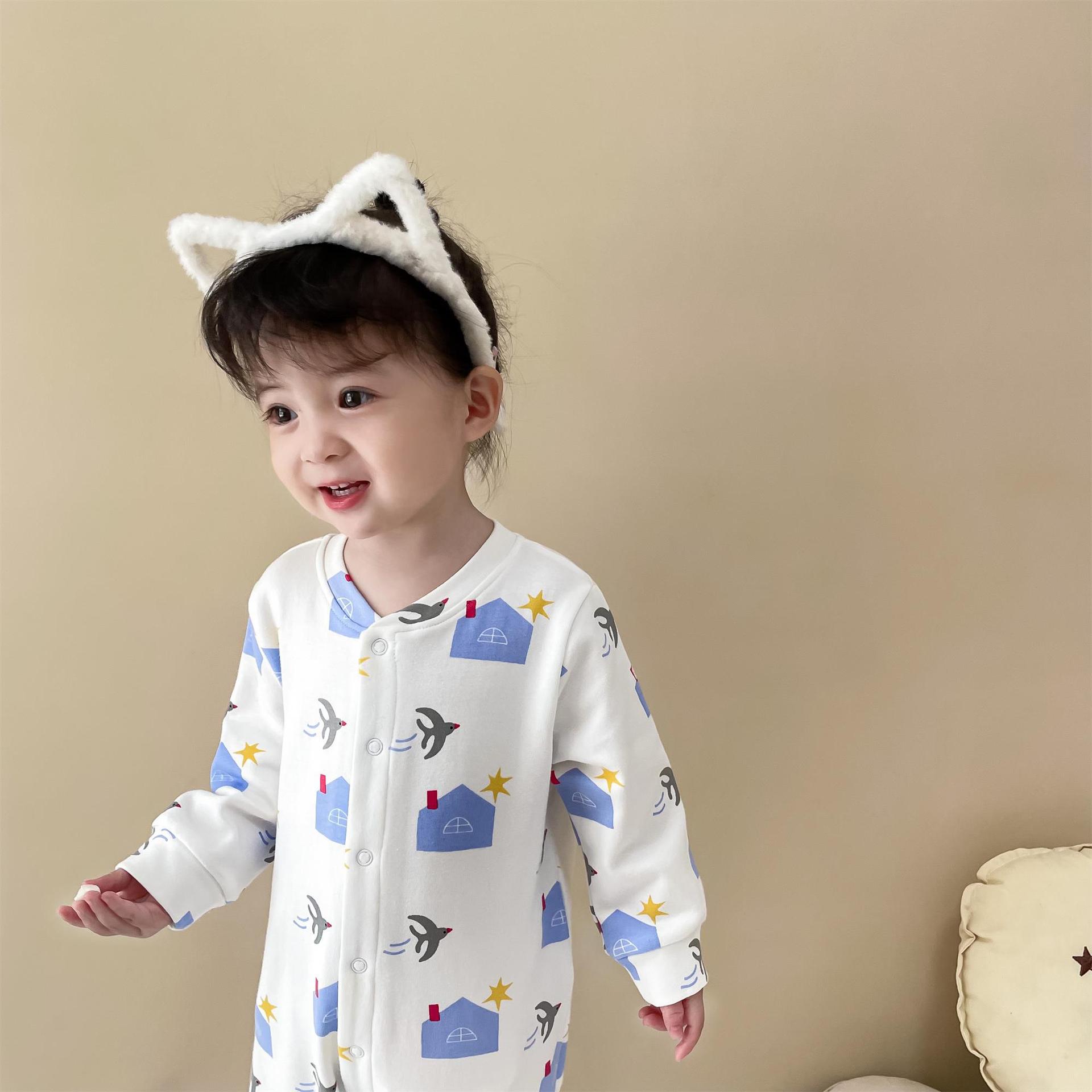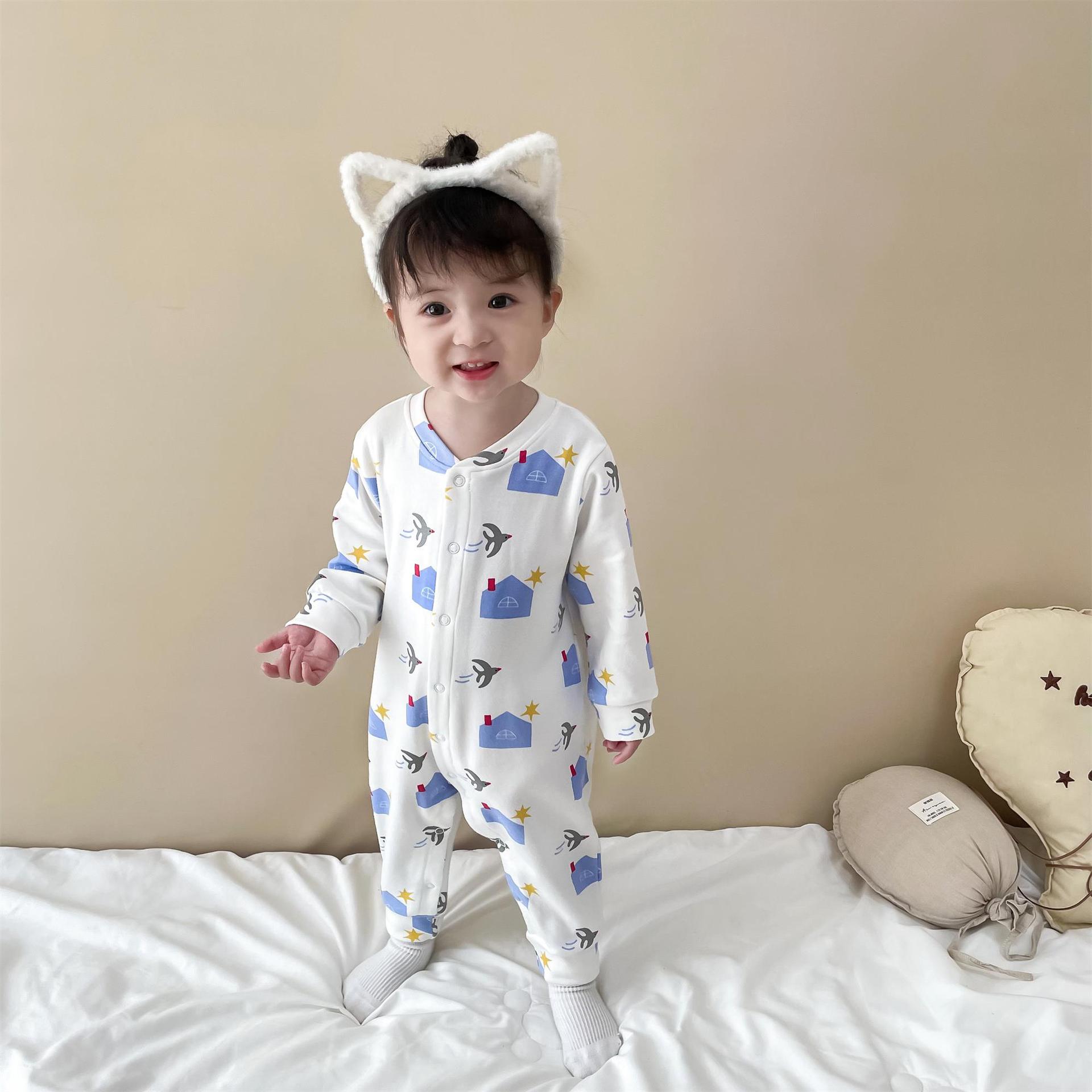 Ins primavera e outono roupas de bebê macacão estilo super ocidental macacão de bebê menina macacão de bebê menino manga longa macacão grosso