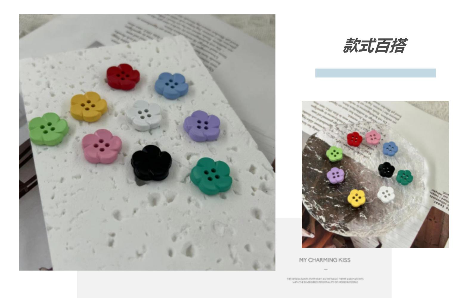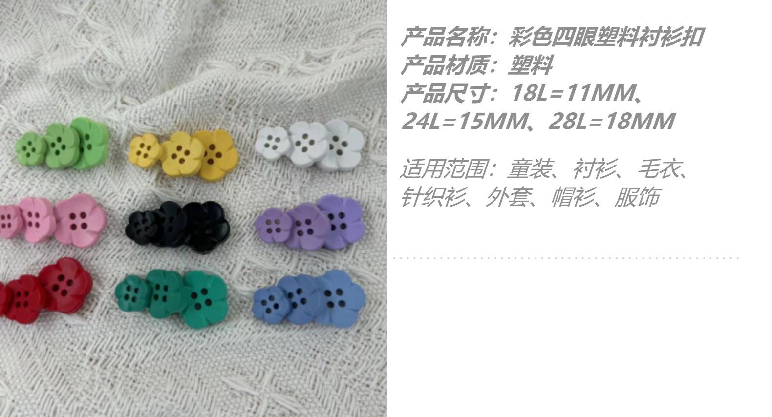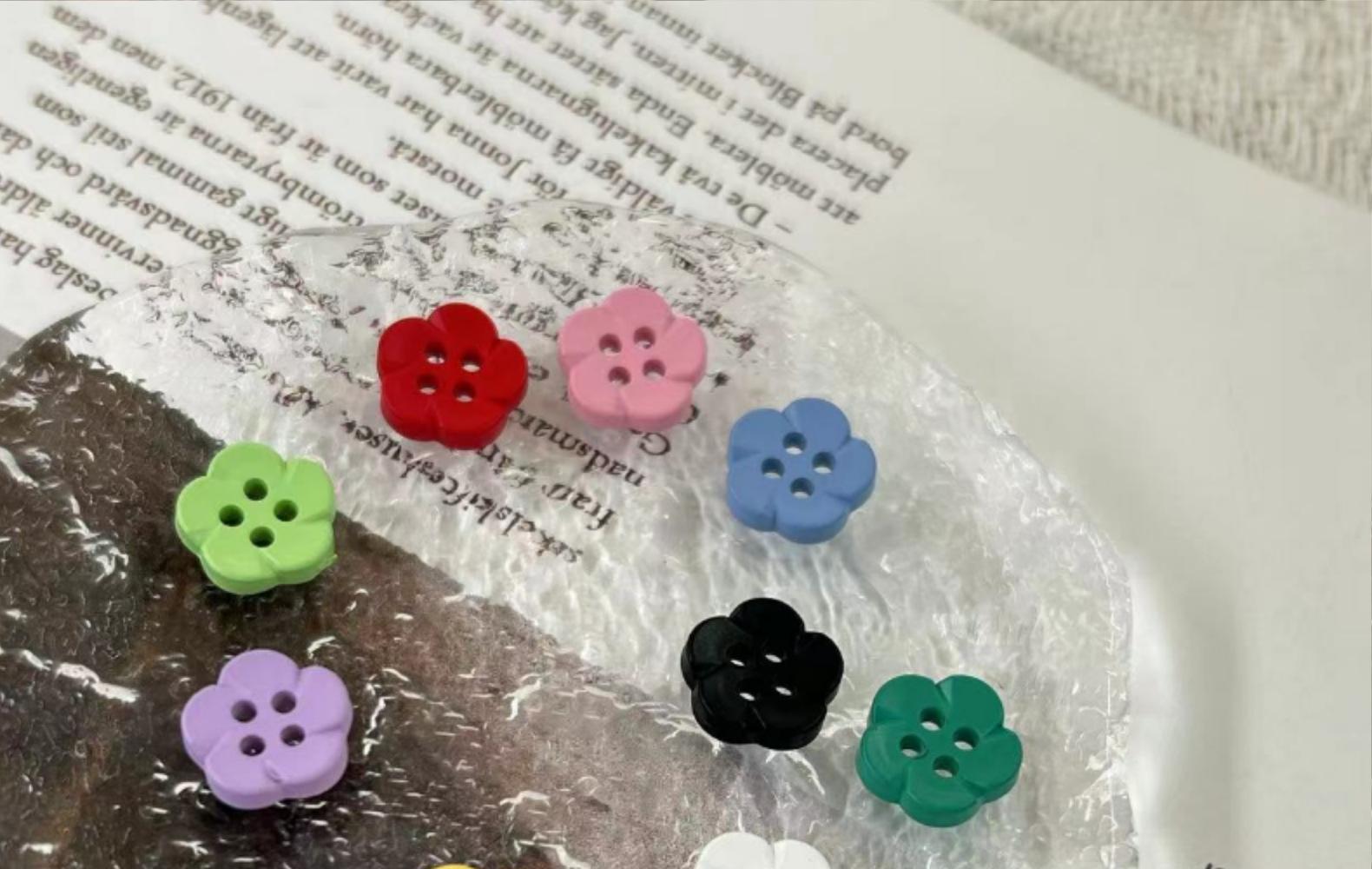Tinta Spray de Plástico Colorido Quatro Olhos Botão de Flor Camisa Infantil Casaco Suéter Malhas Botão Costurado à Mão Fivela Decorativa