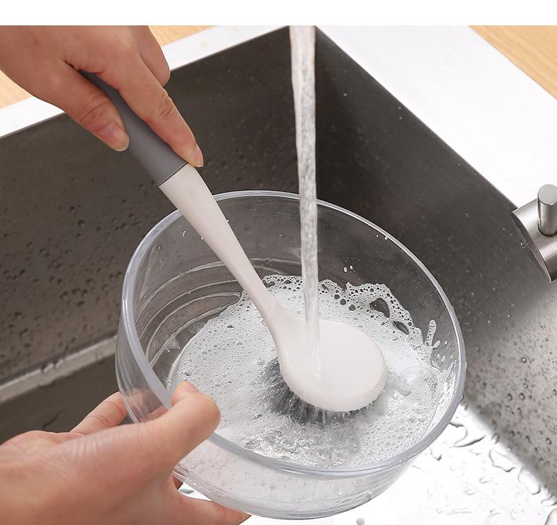 Compre Escova de lavagem de panela de alça longa Escova pequena doméstica Escova doméstica Artefato Cozinha Antiaderente Panela Descontaminação Fogão Panela de limpeza Tigela Escova no atacado no Joom.pro