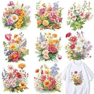 | Desenho animado flor padrão transferência de calor hot stamping ponto camiseta bagagem artesanal faça você mesmo impressão hot stamping lavável hot stamping |