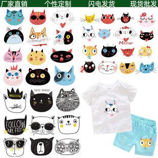 | Impressão por transferência de calor disponível para roupas de gato de desenho animado, etiquetas, logotipos e estampas. Alta elasticidade e lavável. |