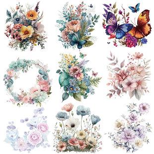 | Estampas termotransferíveis retrô florais de primavera transfronteiriças em tinta branca para roupas, etiquetas e acessórios; adesivos e estampas termotransferíveis disponíveis agora. |