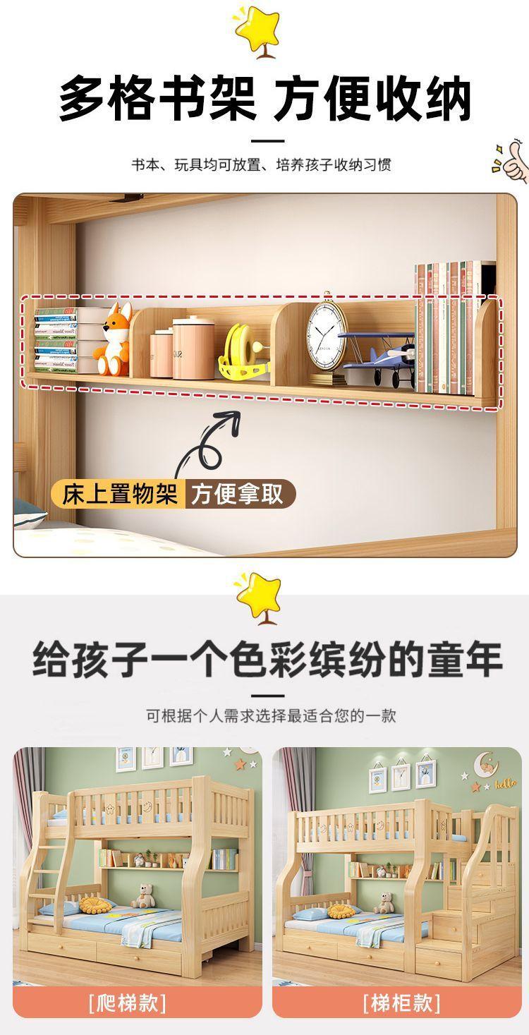 Bunk bed with ladder & bookshelf, double drawers [free mattress included] - top bunk 140cm, bottom bunk 160cm --- almost sold out!