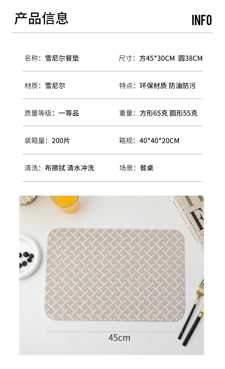 Jogo americano de chenille, pano isolante, jogo americano de mesa, hotel, restaurante, cross-border, Amazon, Shein Shop, jogo americano quadrado ocidental