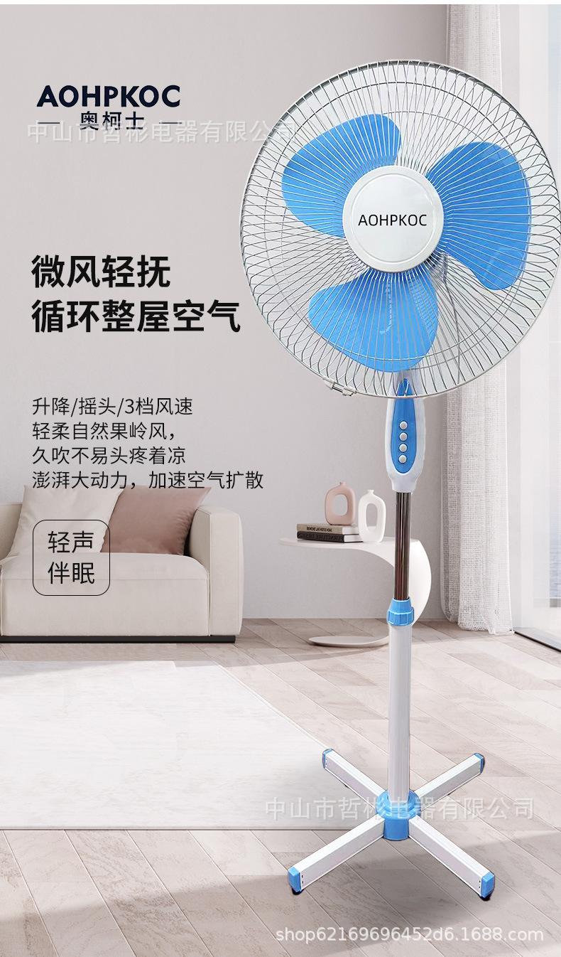 Ventilador de chão doméstico de 16 polegadas com ventilador cruzado de fábrica transfronteiriça, ventilador de cabeça oscilante vertical, ventilador industrial de grande porte, atacado