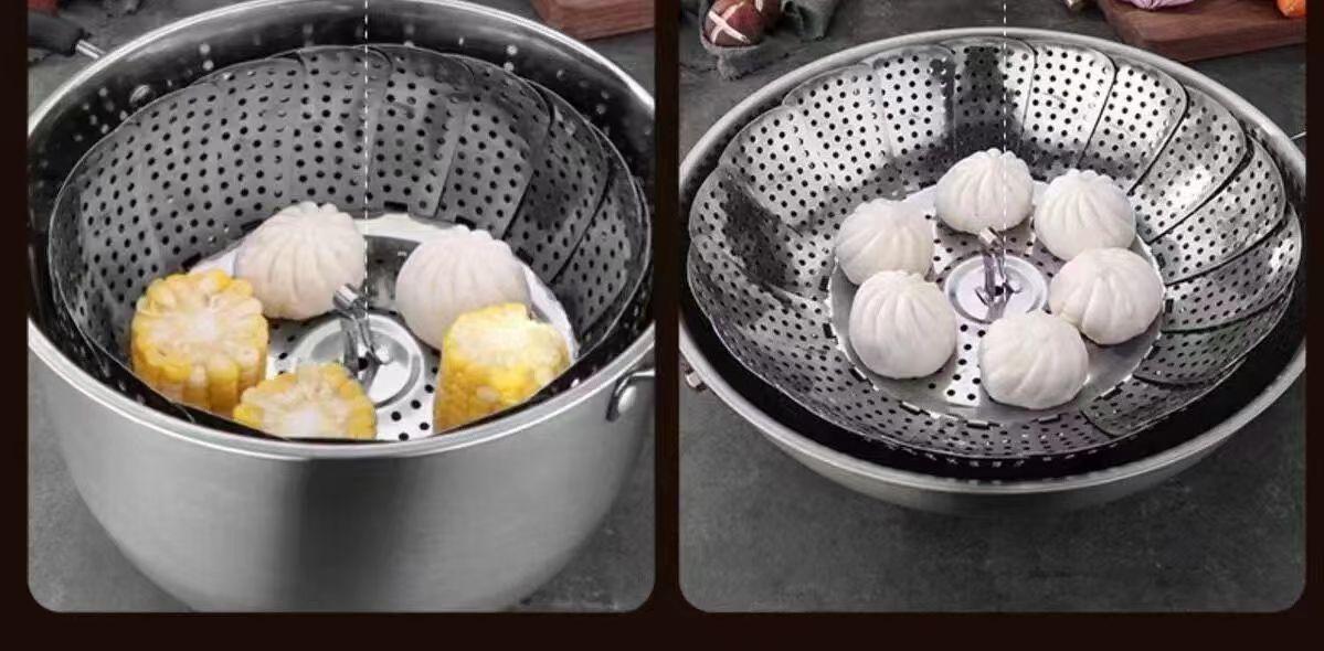 Placa de vapor dobrável multifuncional Rack de vapor de aço inoxidável universal Rack de vapor de treliça de vapor doméstico Gaiola de esteira de pão cozido no vapor
