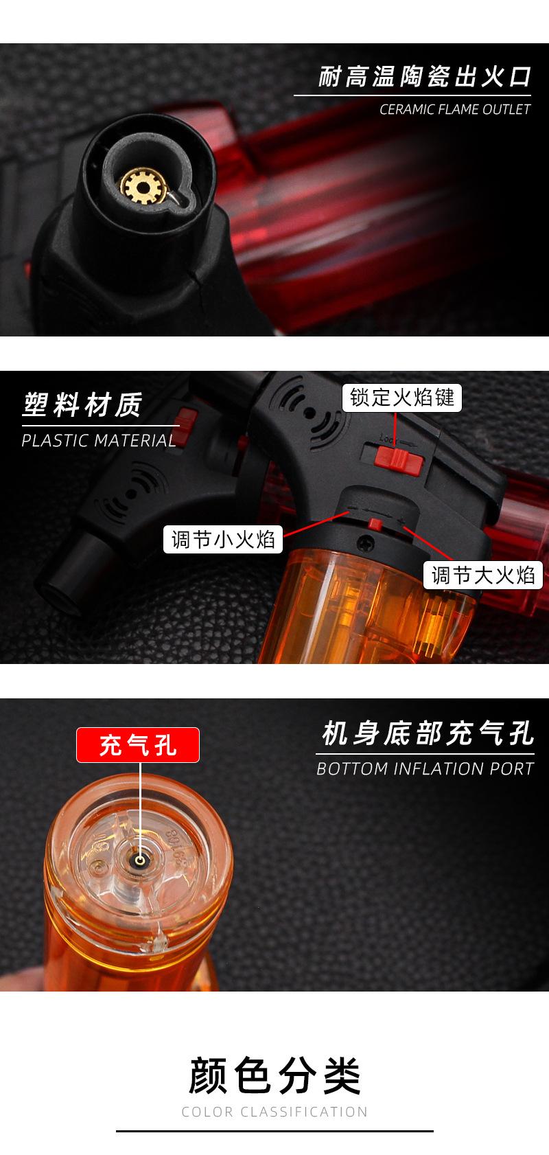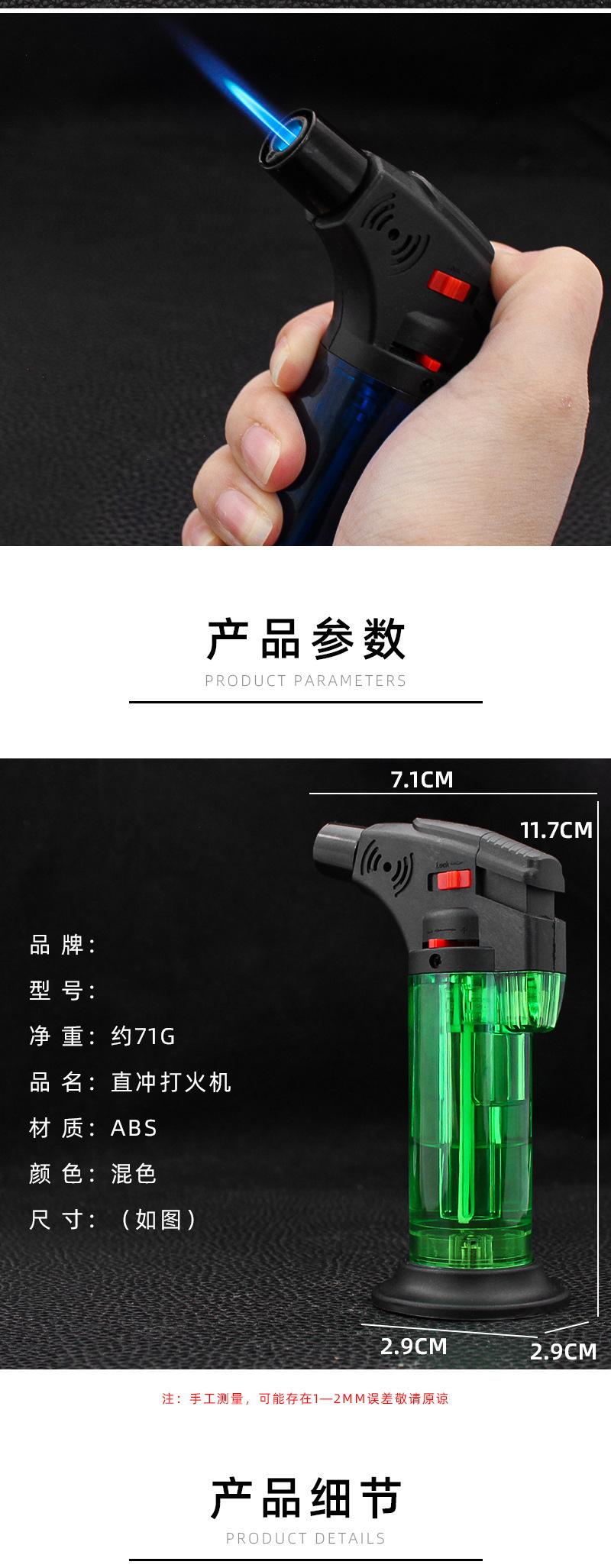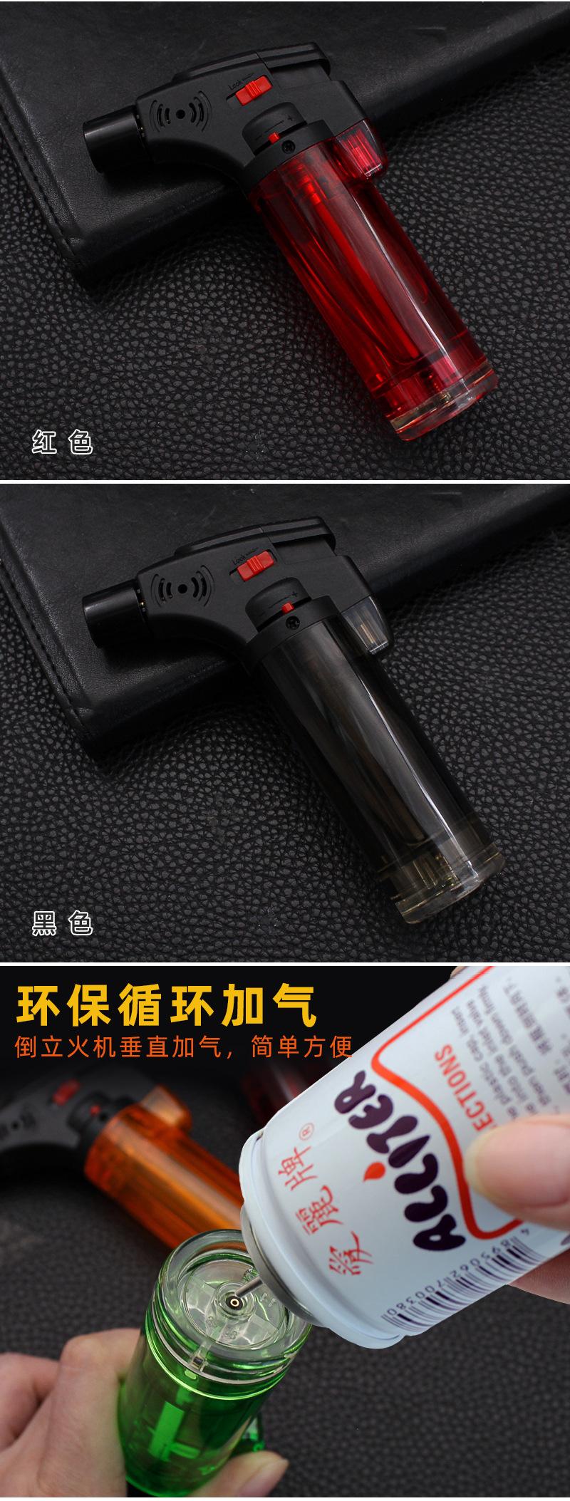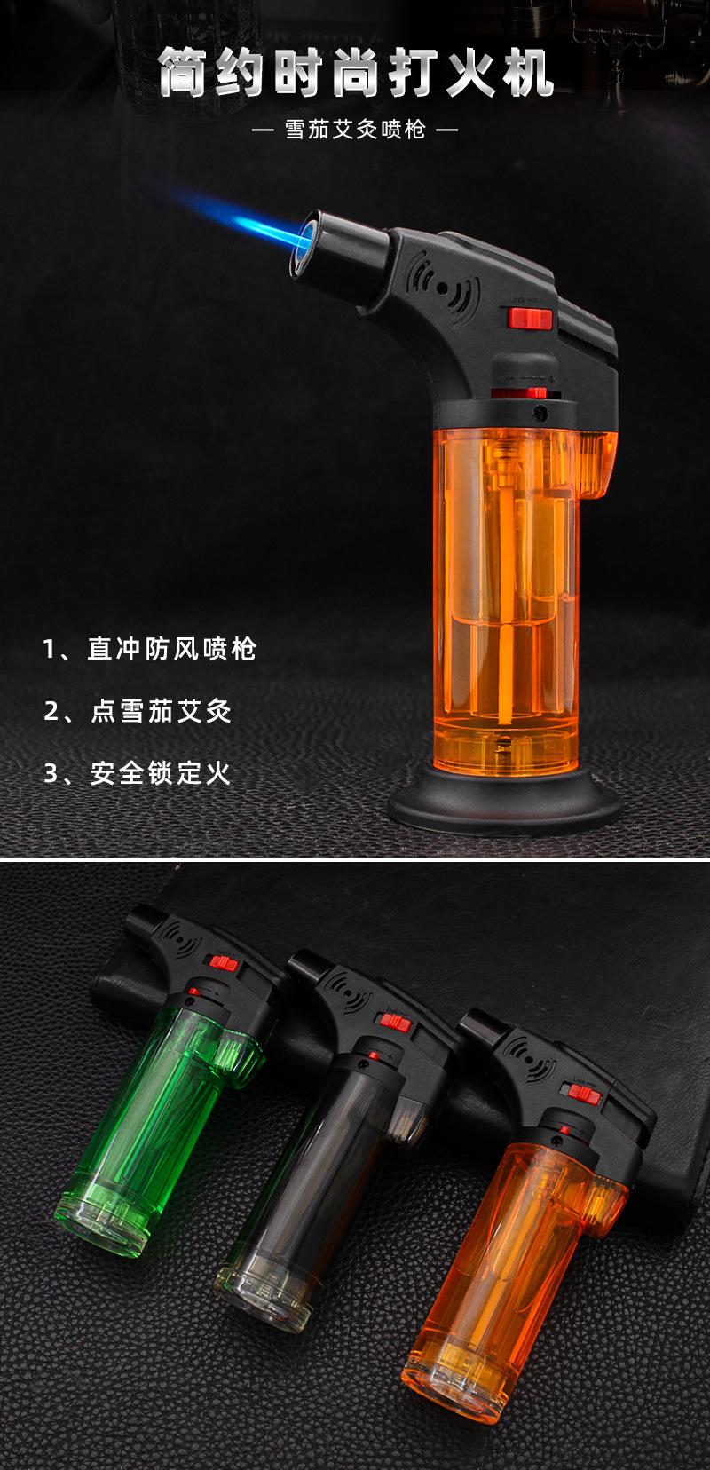 FD888 mesa charuto moxabustão fogo arma plástico corpo transparente trava fogo direto perfuração à prova de vento isqueiro