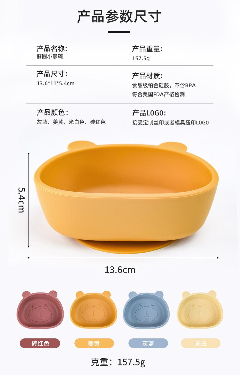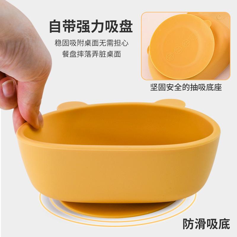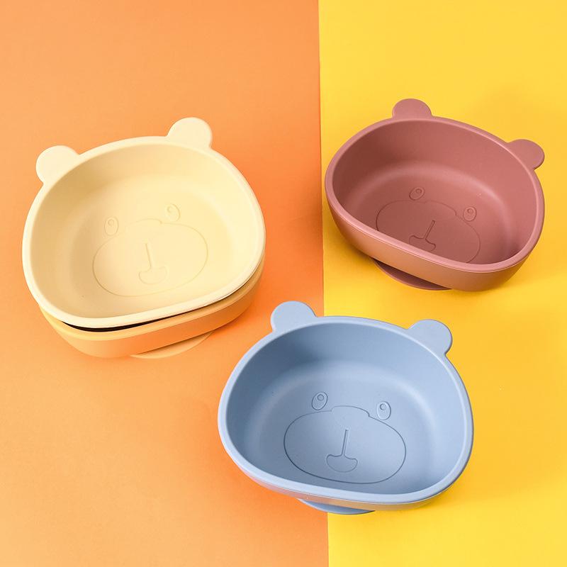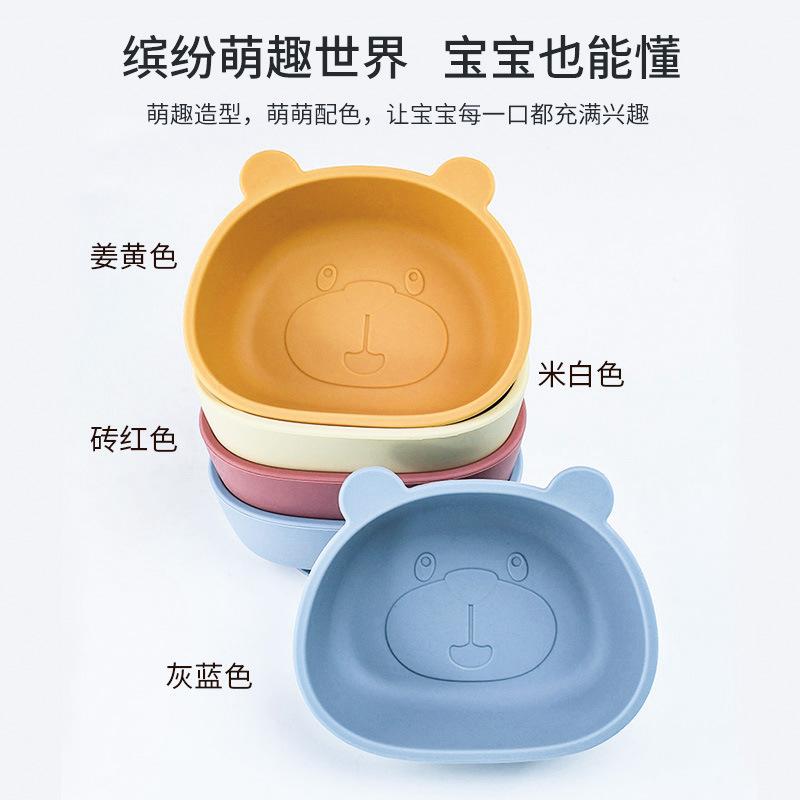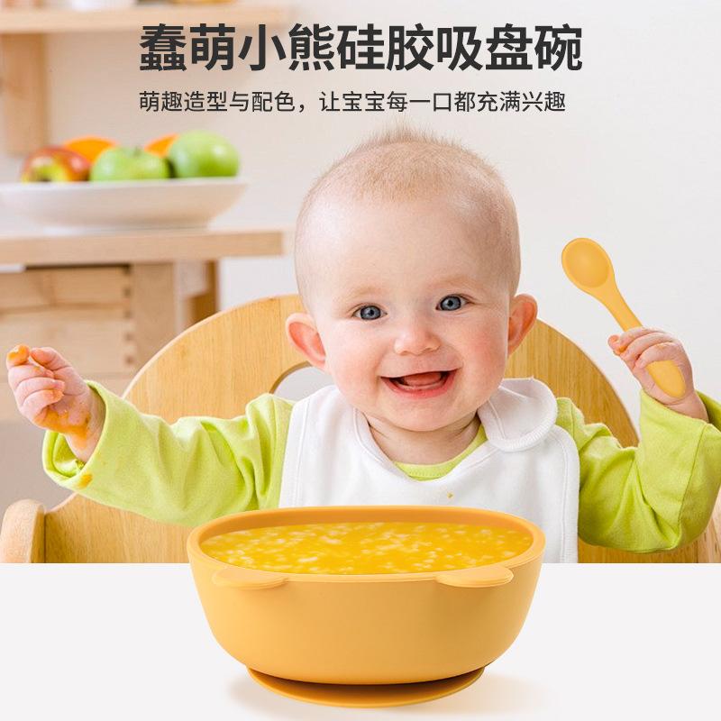 Amazon Bear Silicone Bowl Suction Bowl Cartoon Bear One-piece Baby Food Bowl Talheres de alimentação infantil