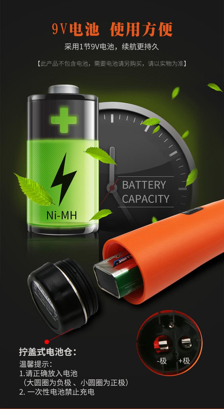 Nota: Como o detector consome muita energia, pilhas alcalinas são necessárias. Se o detector produz ruído anormal mesmo quando não está tocando metal, geralmente é porque são usadas pilhas de carbono-zinco ou pilhas alcalinas de baixa potência. Você pode substituí-las por pilhas alcalinas com energia suficiente.