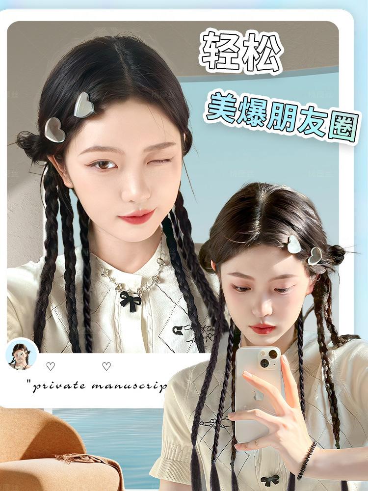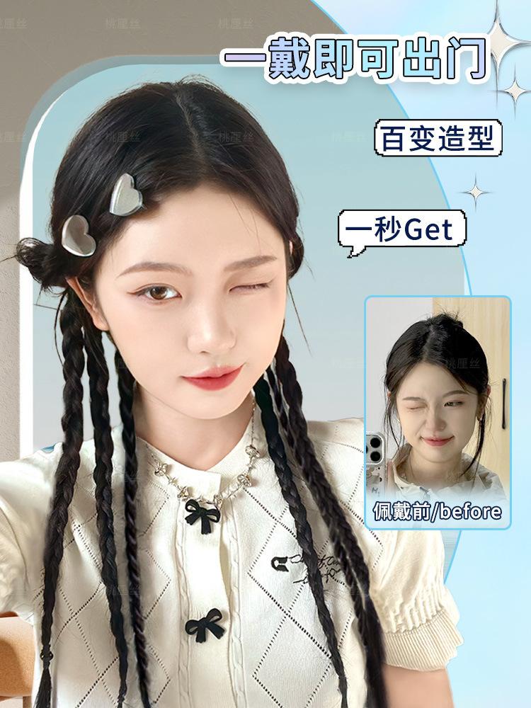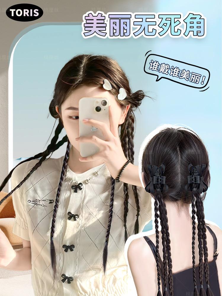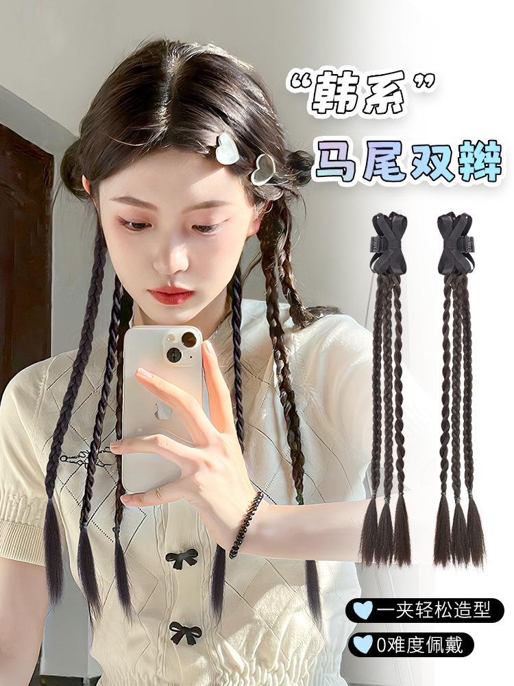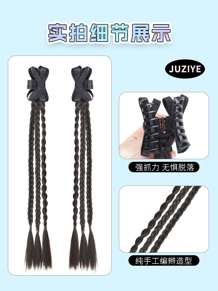 Peruca Trança Rabo de Cavalo Sexy Trança Torcida Trança Boxeadora Cabelo Artificial Natural Trança Torcida Rabo de Cavalo Duplo Peruca com Laço