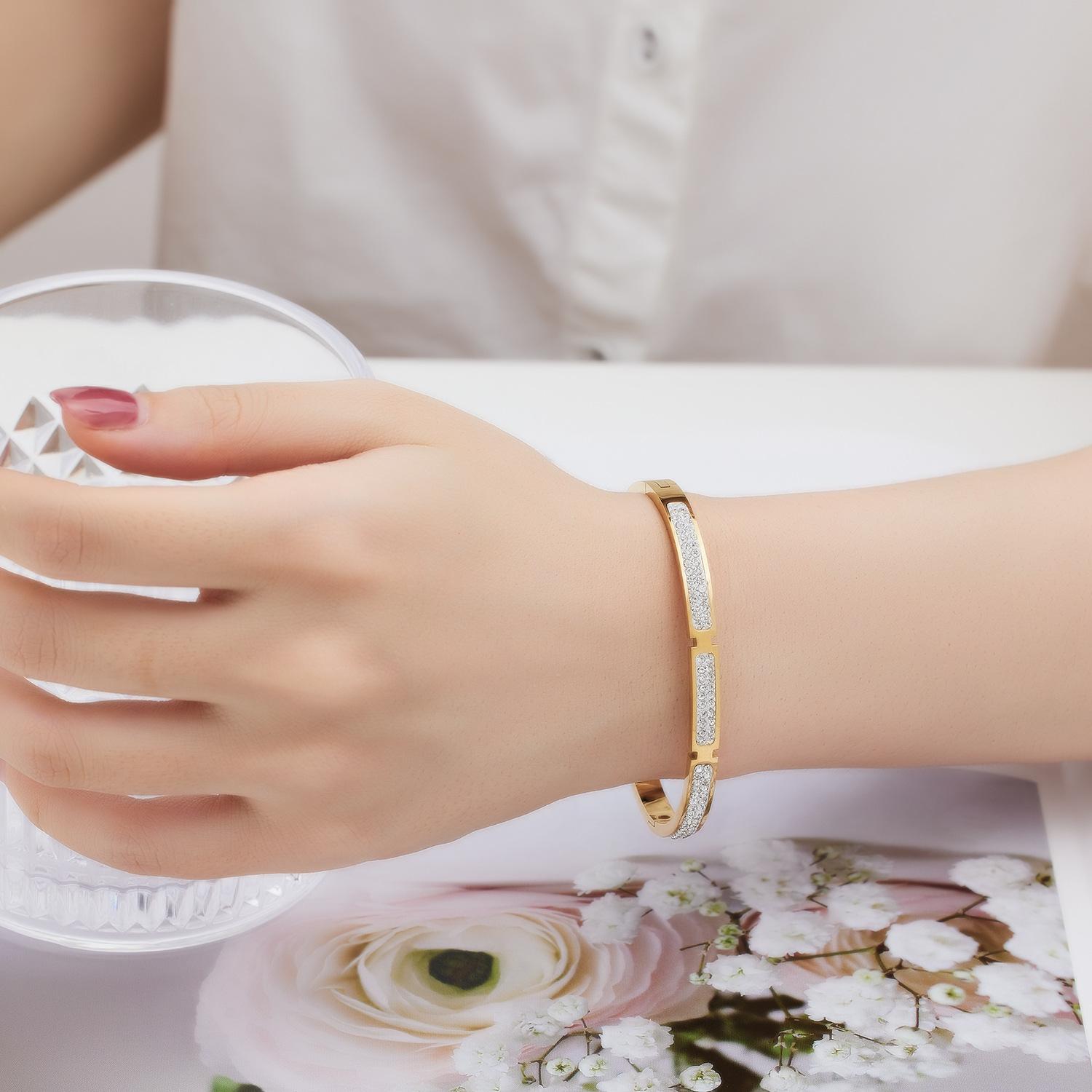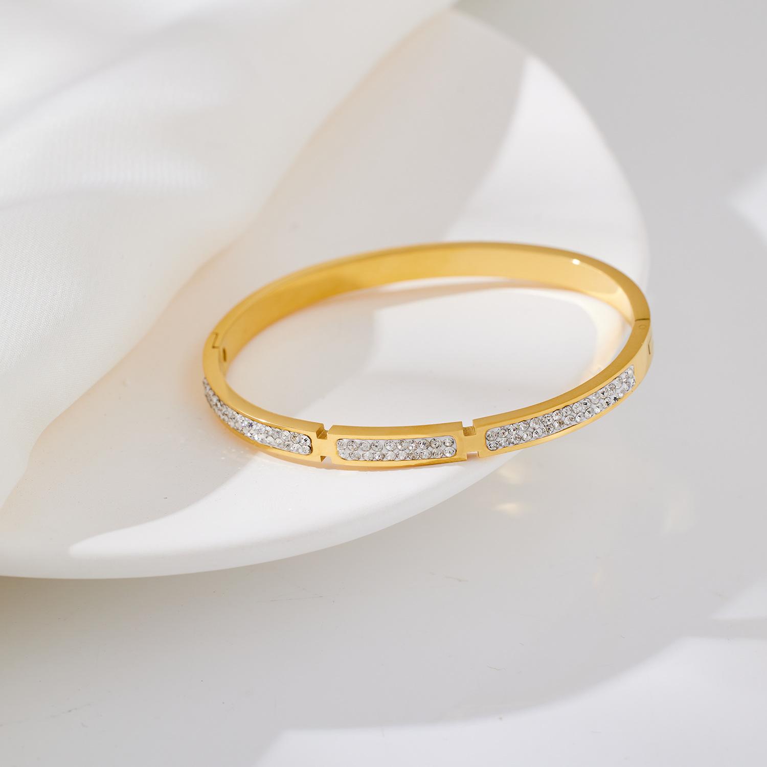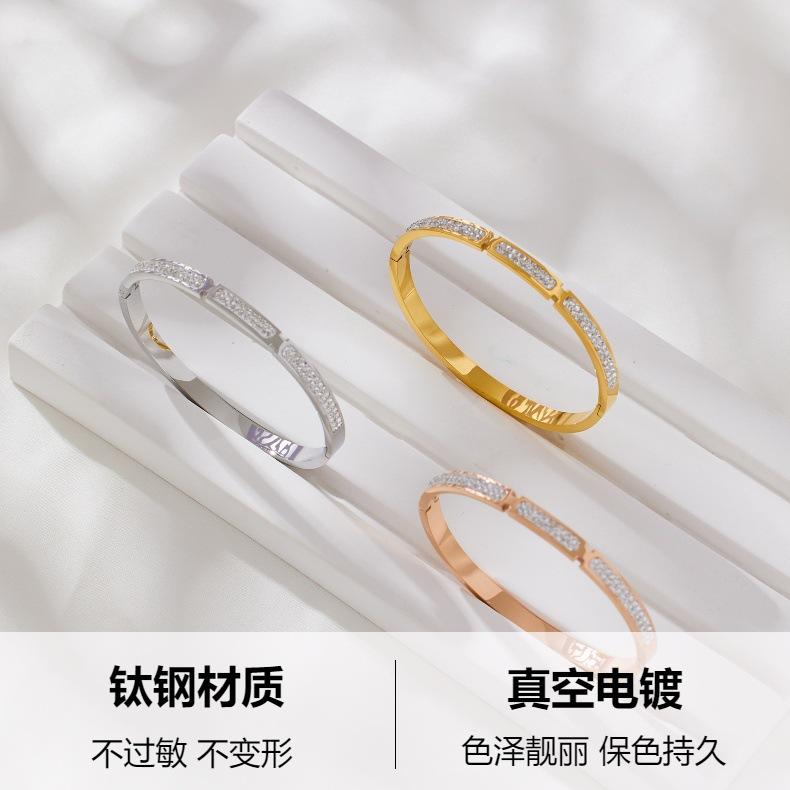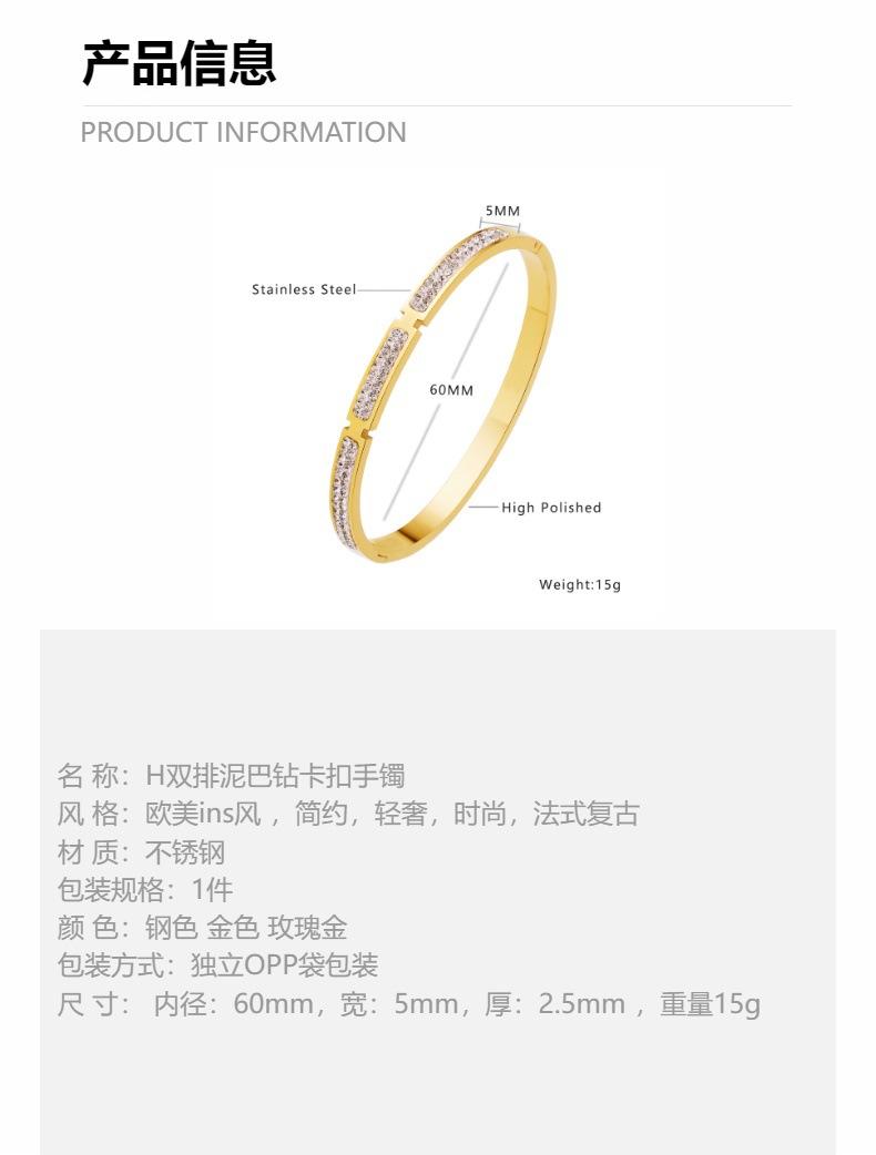 Compre Pulseira Retrô Transfronteiriça Europeia e Americana Pulseira de Aço Inoxidável Banhada a Ouro 18K H Linha Dupla Diamante de Lama Aço Titânio Pulseira para Mulheres no atacado no Joom.pro