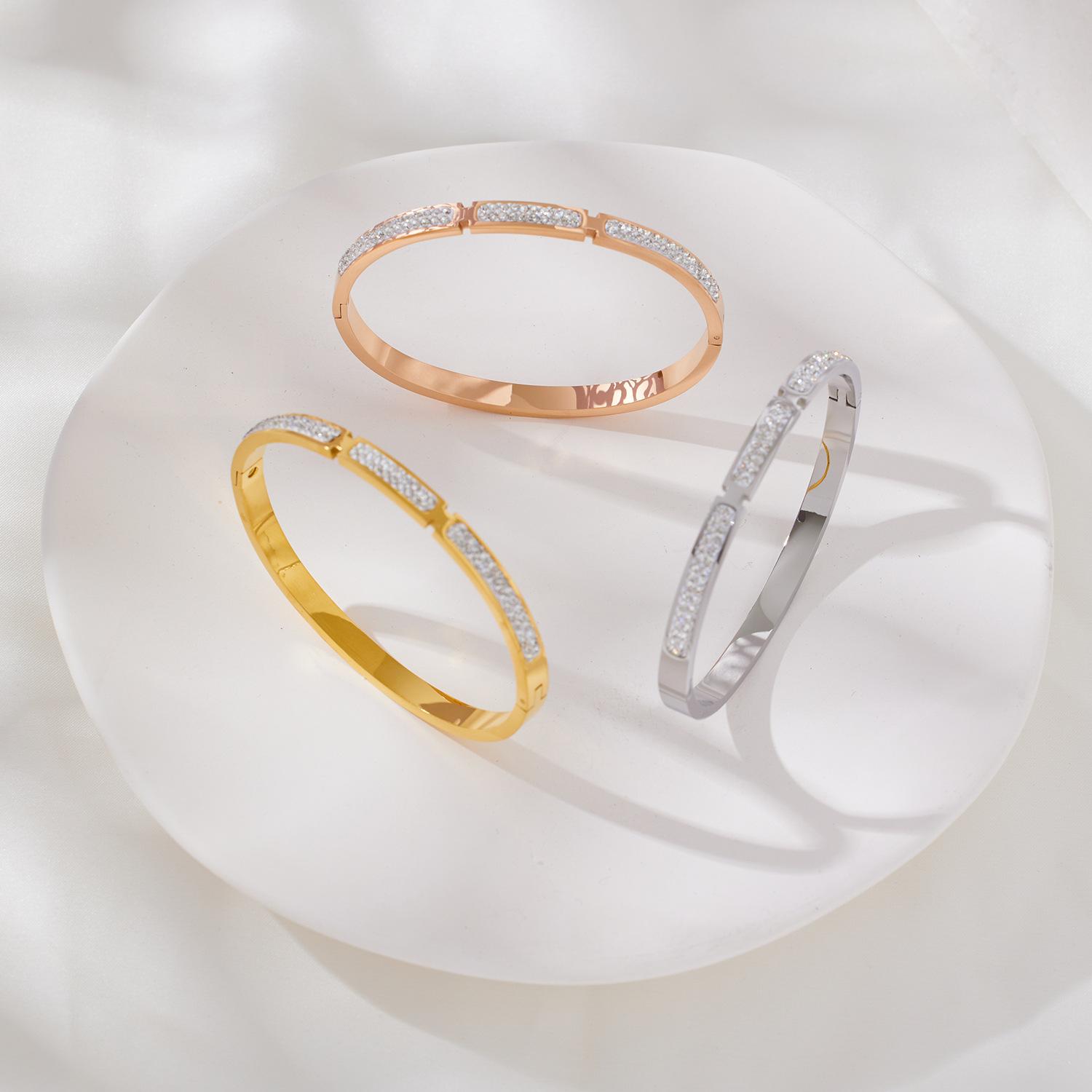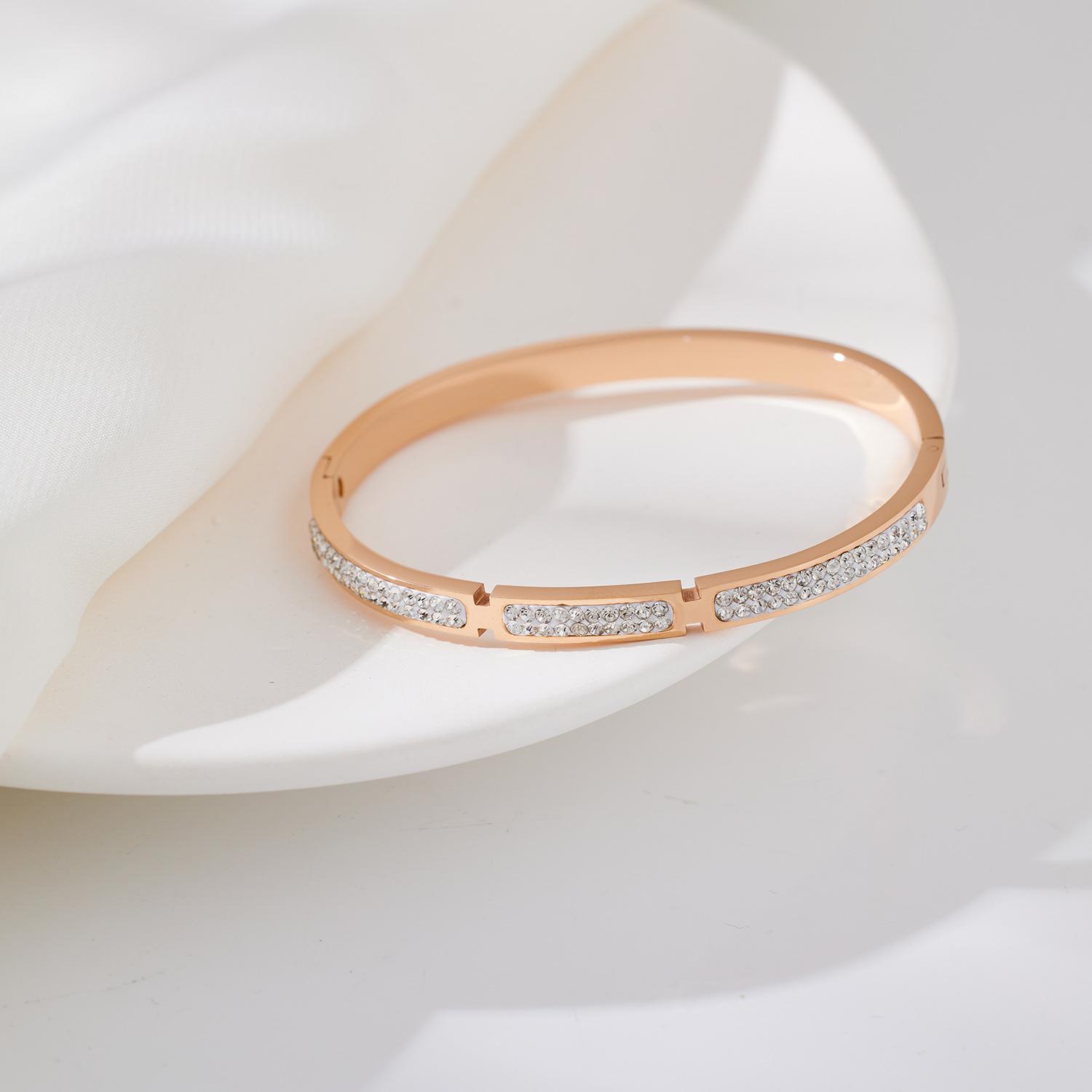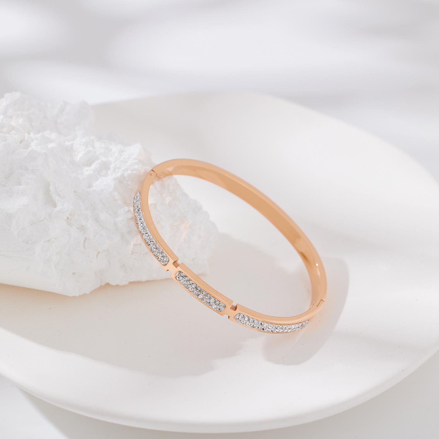 Compre Pulseira Retrô Transfronteiriça Europeia e Americana Pulseira de Aço Inoxidável Banhada a Ouro 18K H Linha Dupla Diamante de Lama Aço Titânio Pulseira para Mulheres no atacado no Joom.pro