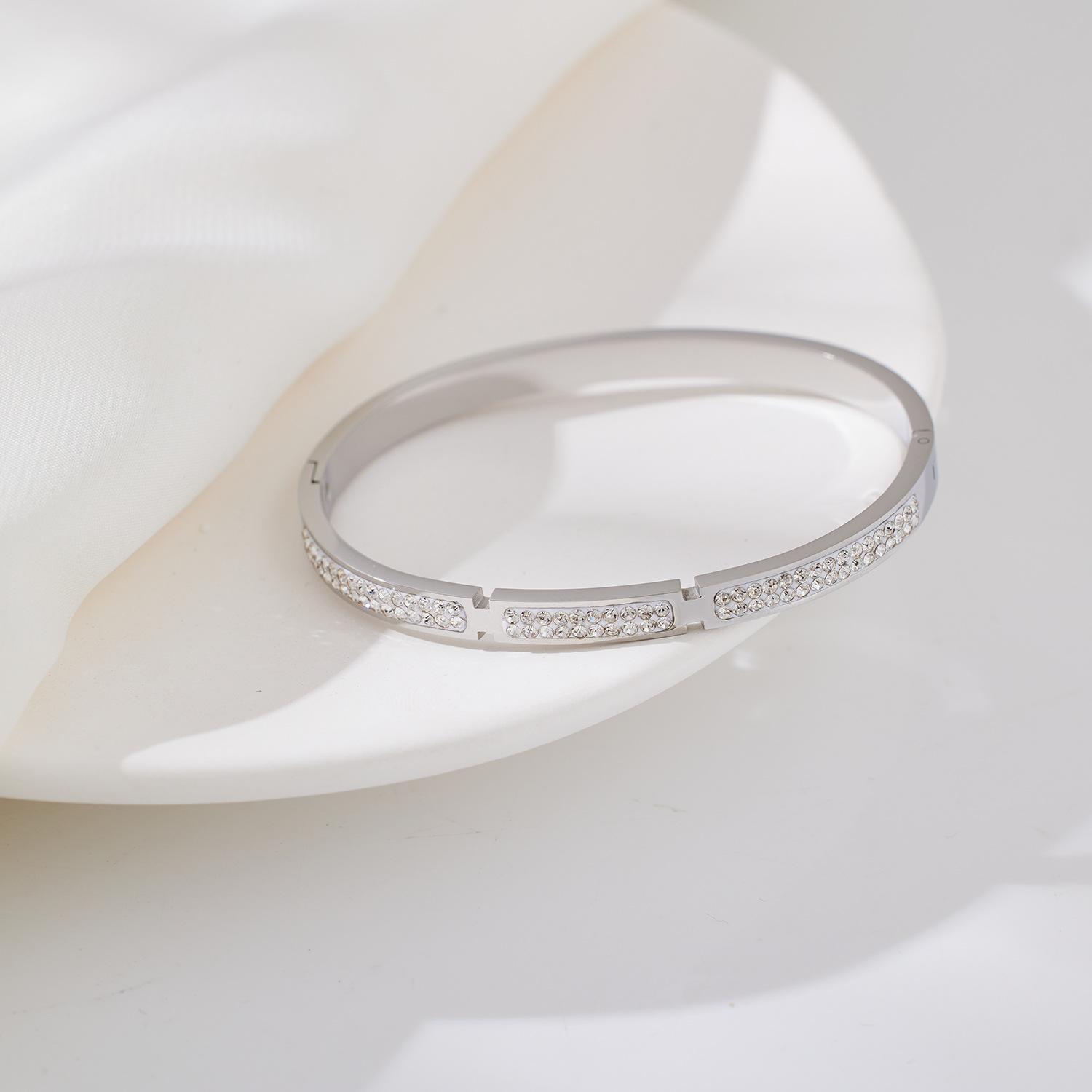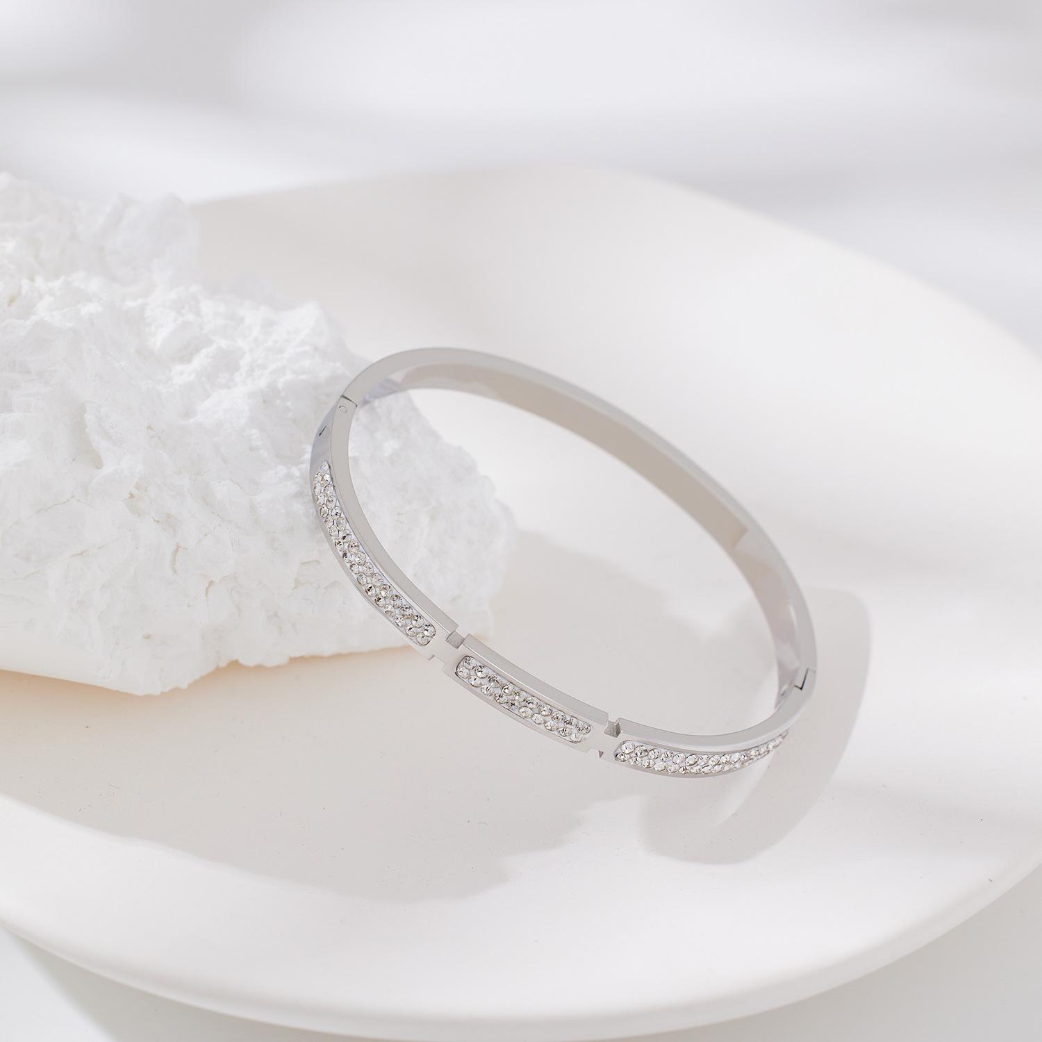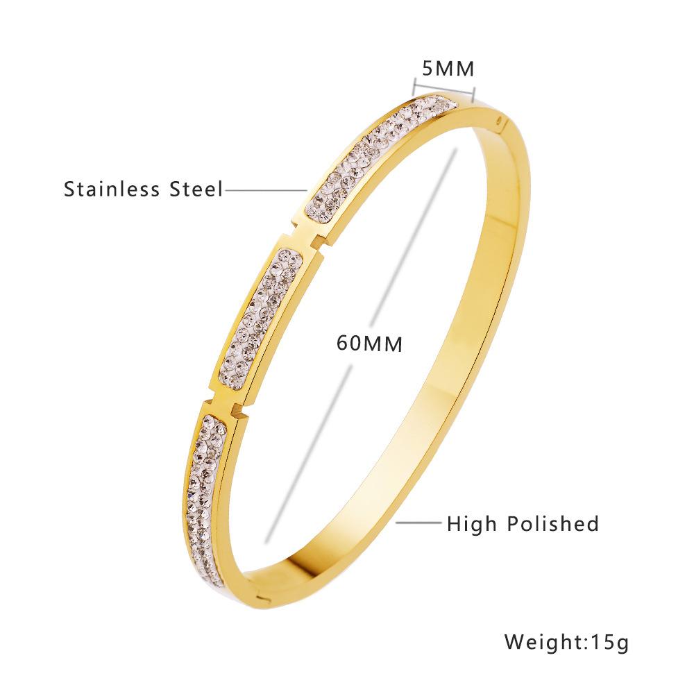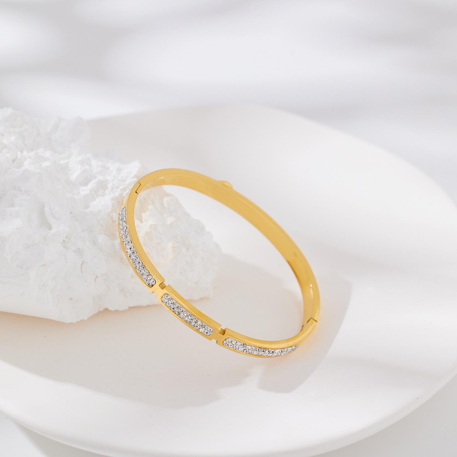 Pulseira Retrô Transfronteiriça Europeia e Americana Pulseira de Aço Inoxidável Banhada a Ouro 18K H Linha Dupla Diamante de Lama Aço Titânio Pulseira para Mulheres