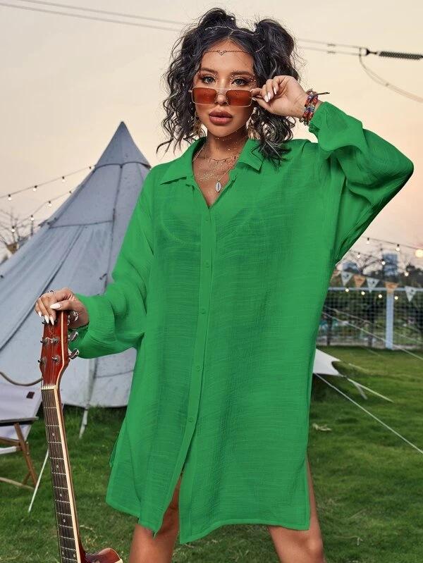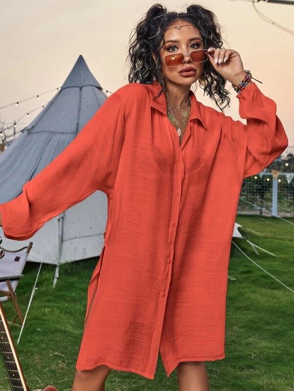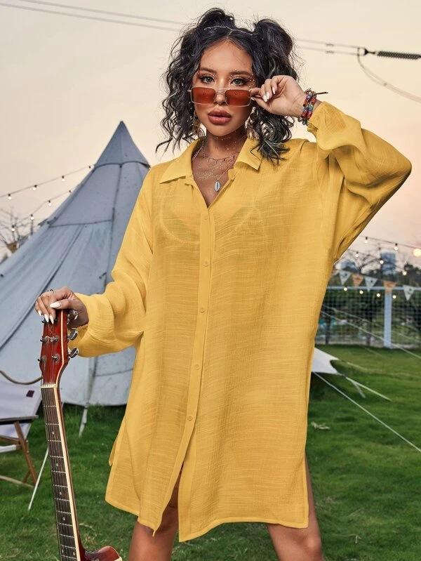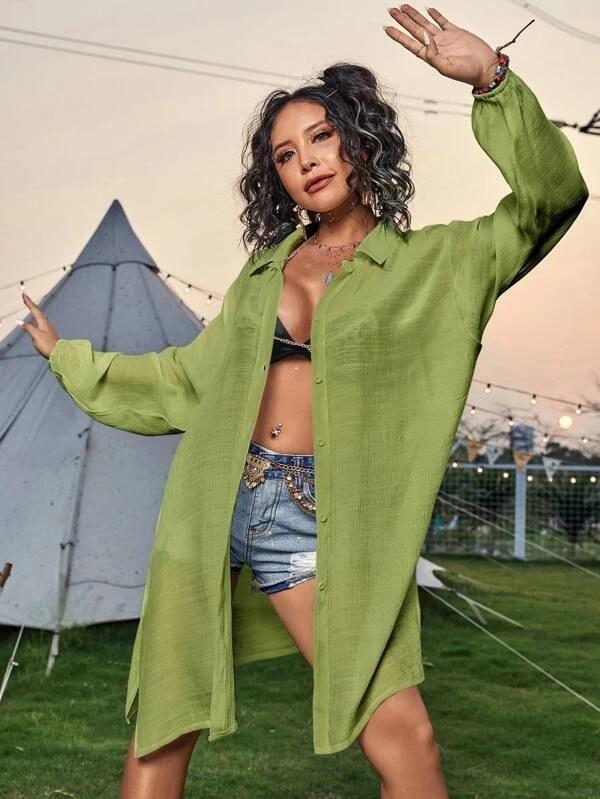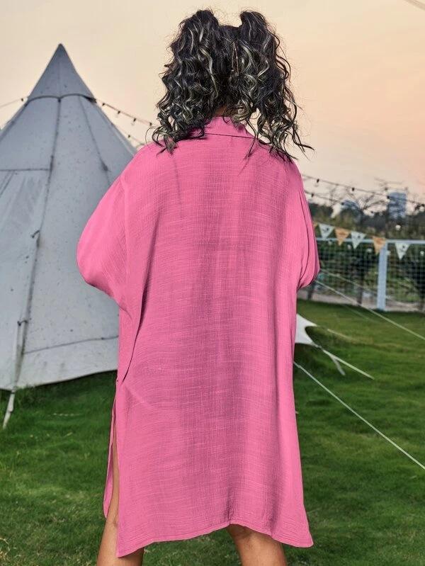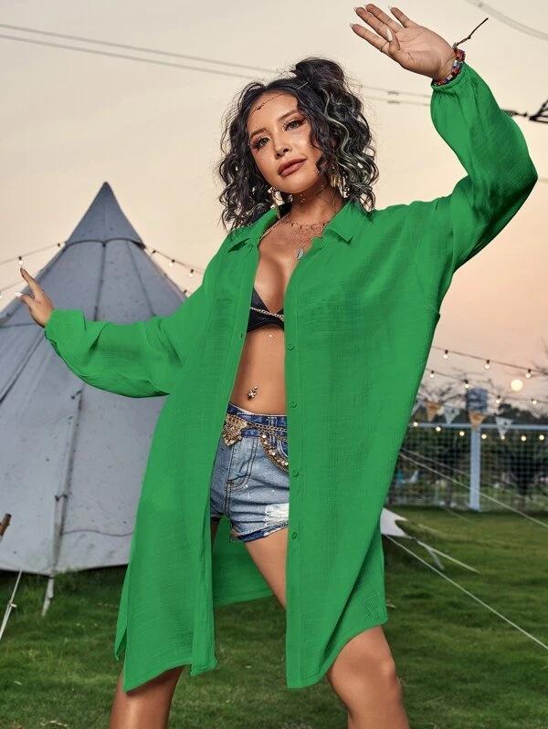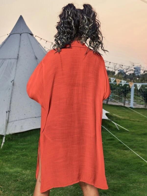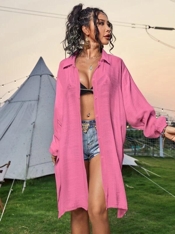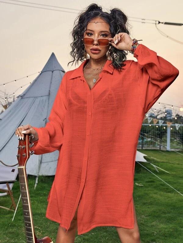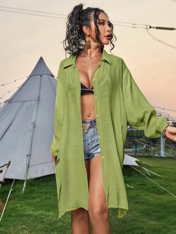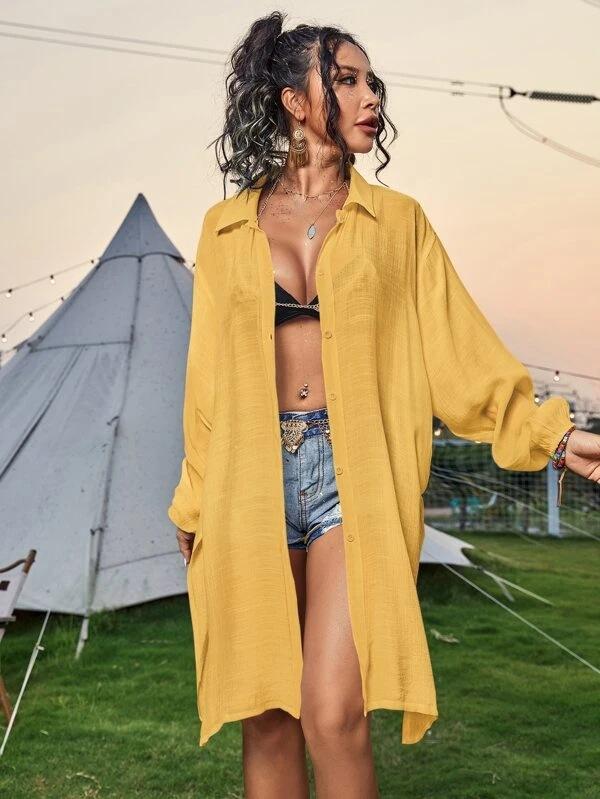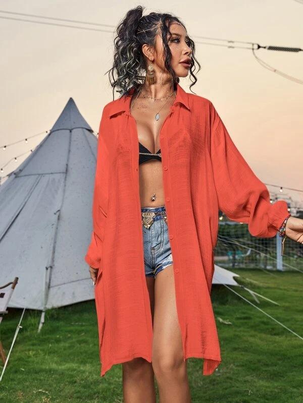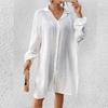Cross-border New Slub Algodão Camisa de Manga Comprida Blusa de Praia Férias Camisa de Proteção Solar Biquíni Swimwear Cardigan