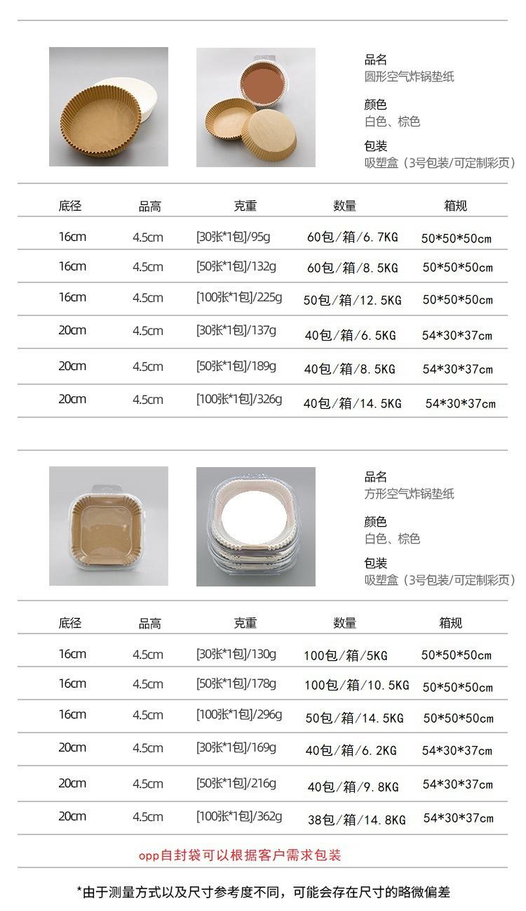 Bandeja de papel descartável para fritadeira de ar para alimentos Papel redondo absorvente de óleo resistente a altas temperaturas para cozimento doméstico Bandeja de papel de óleo de silicone para alimentos