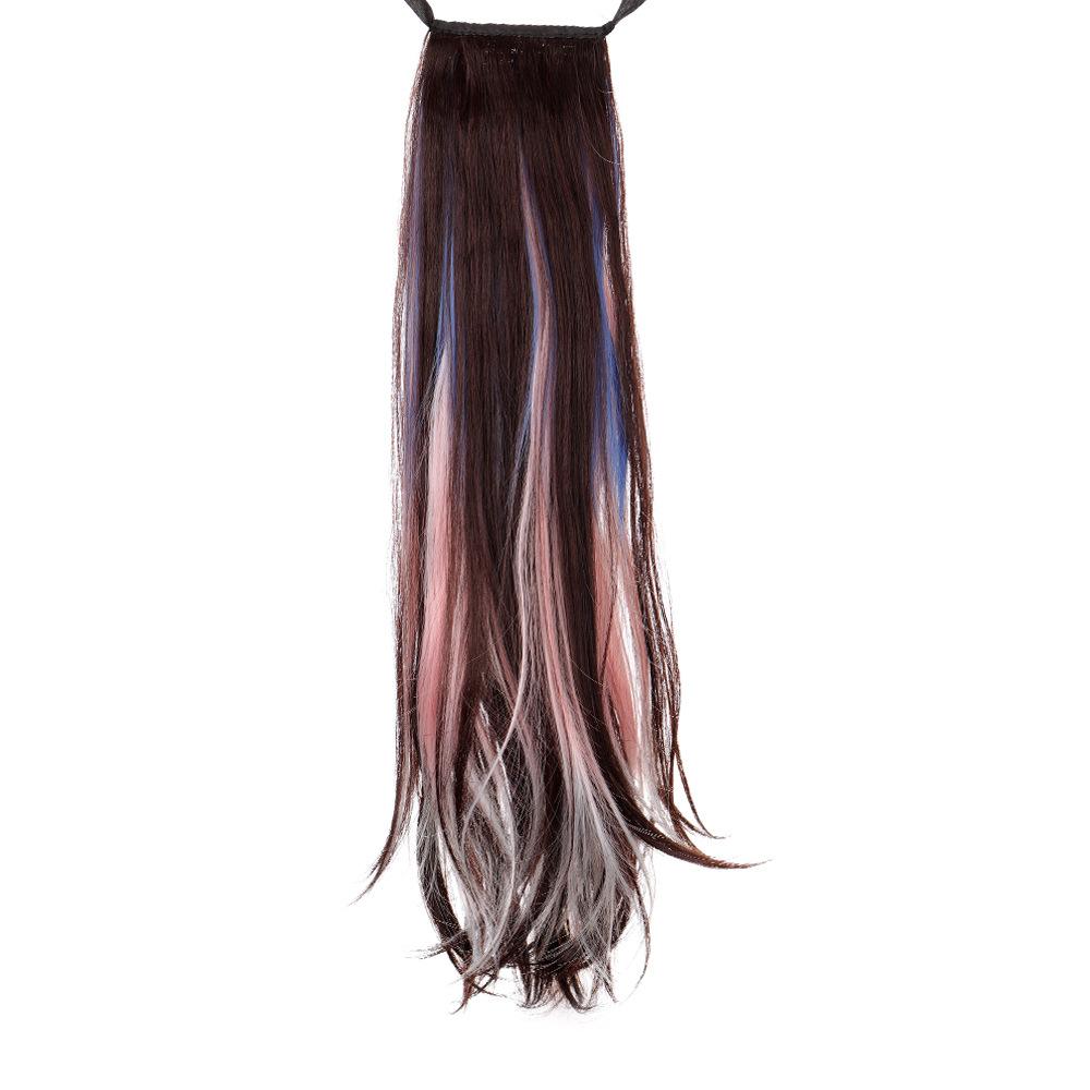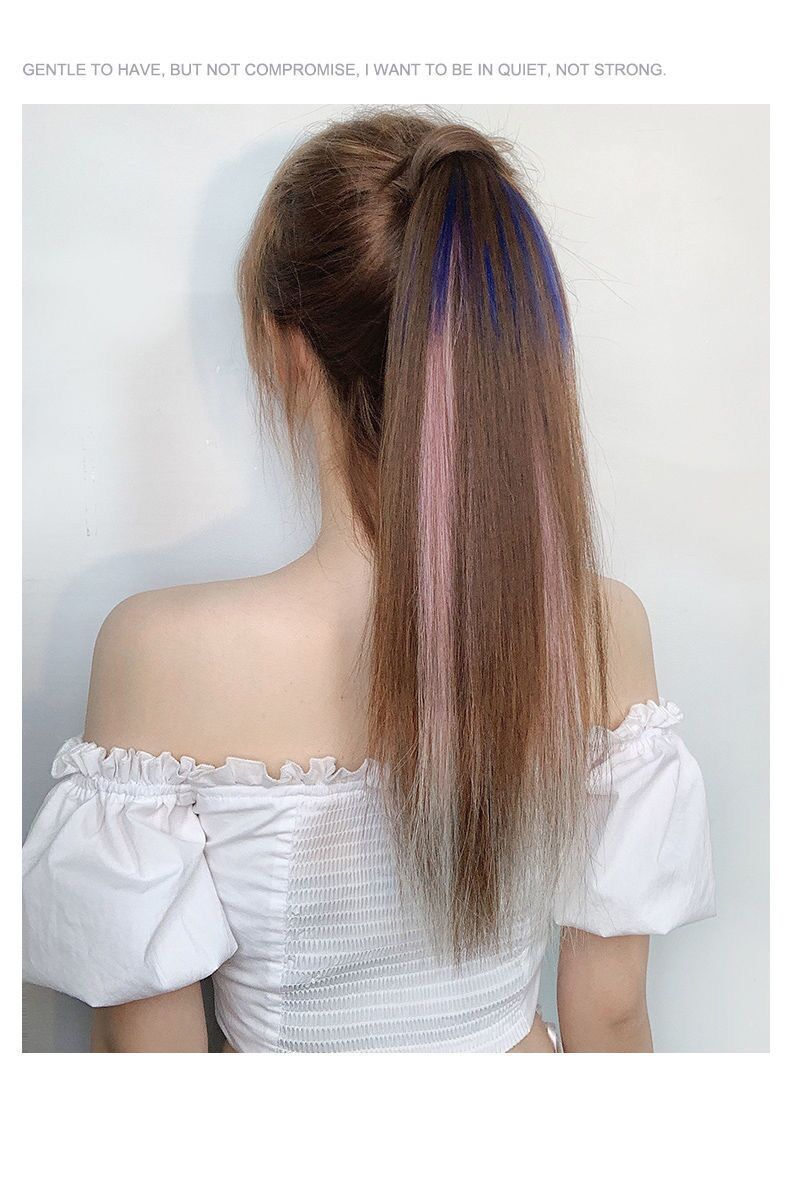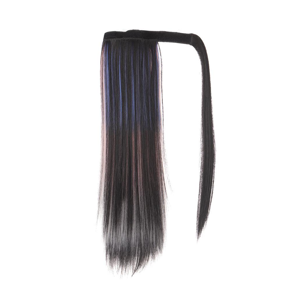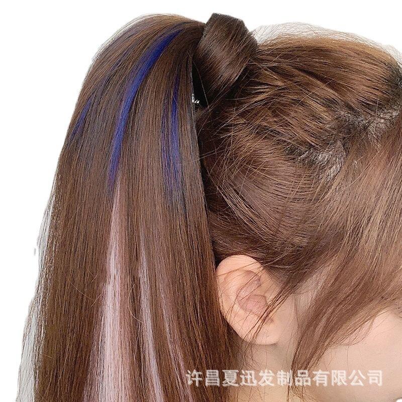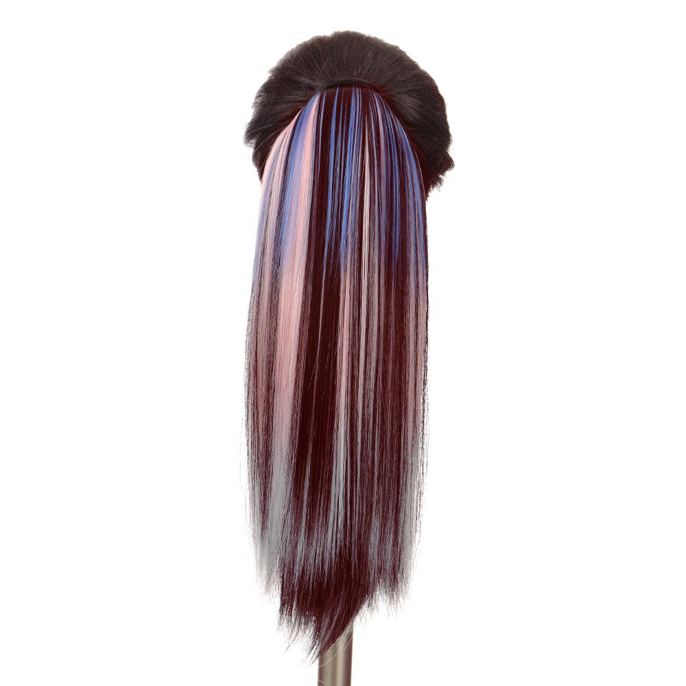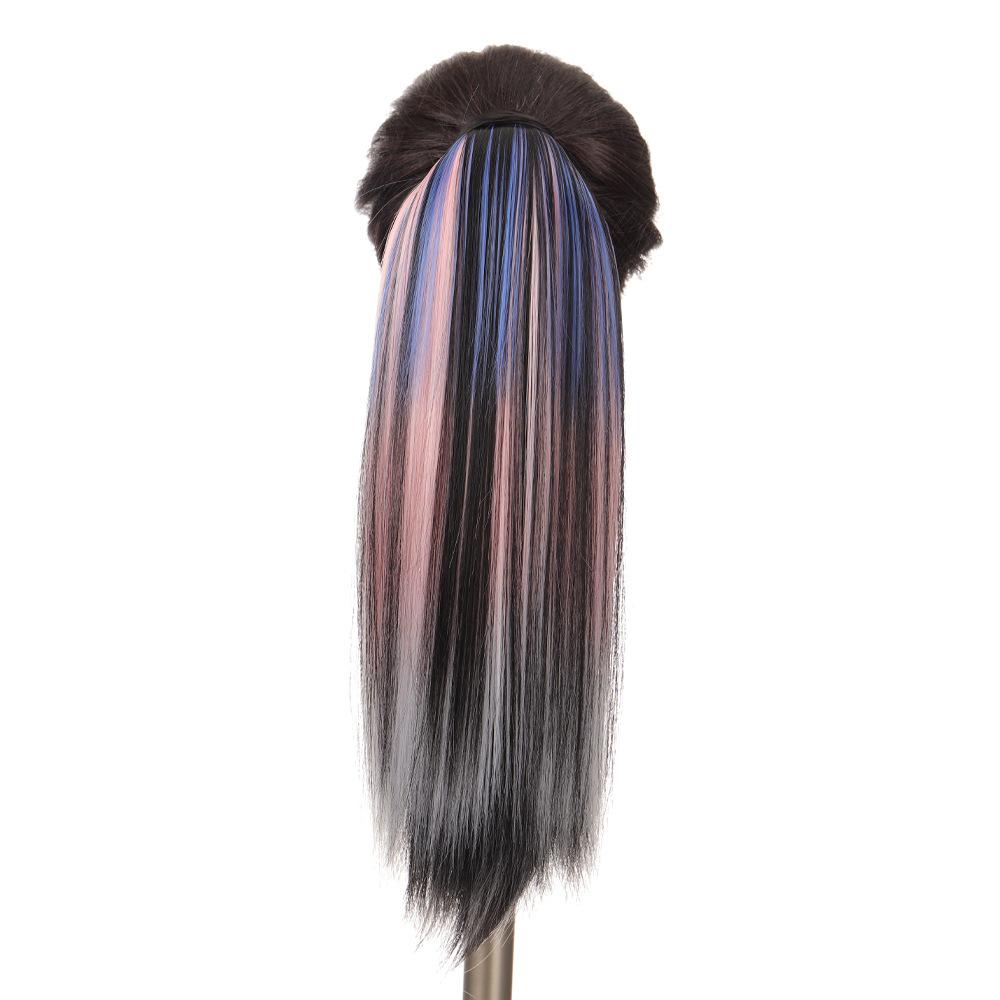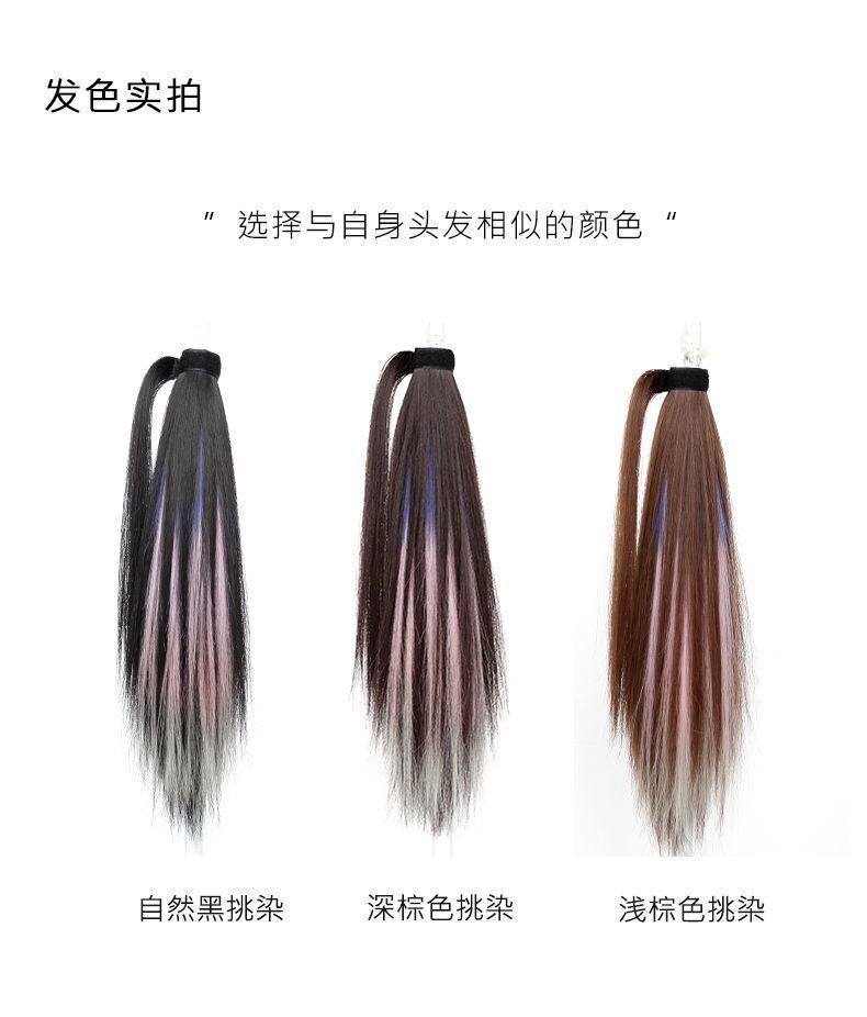 Peruca Rabo de Cavalo Feminino Velcro Fantasma Colorido Manchado Tintura Cabelo Médio-Longo Laço Imitação Natural Cyber Celebrando Rabo de Cavalo Falso Maré